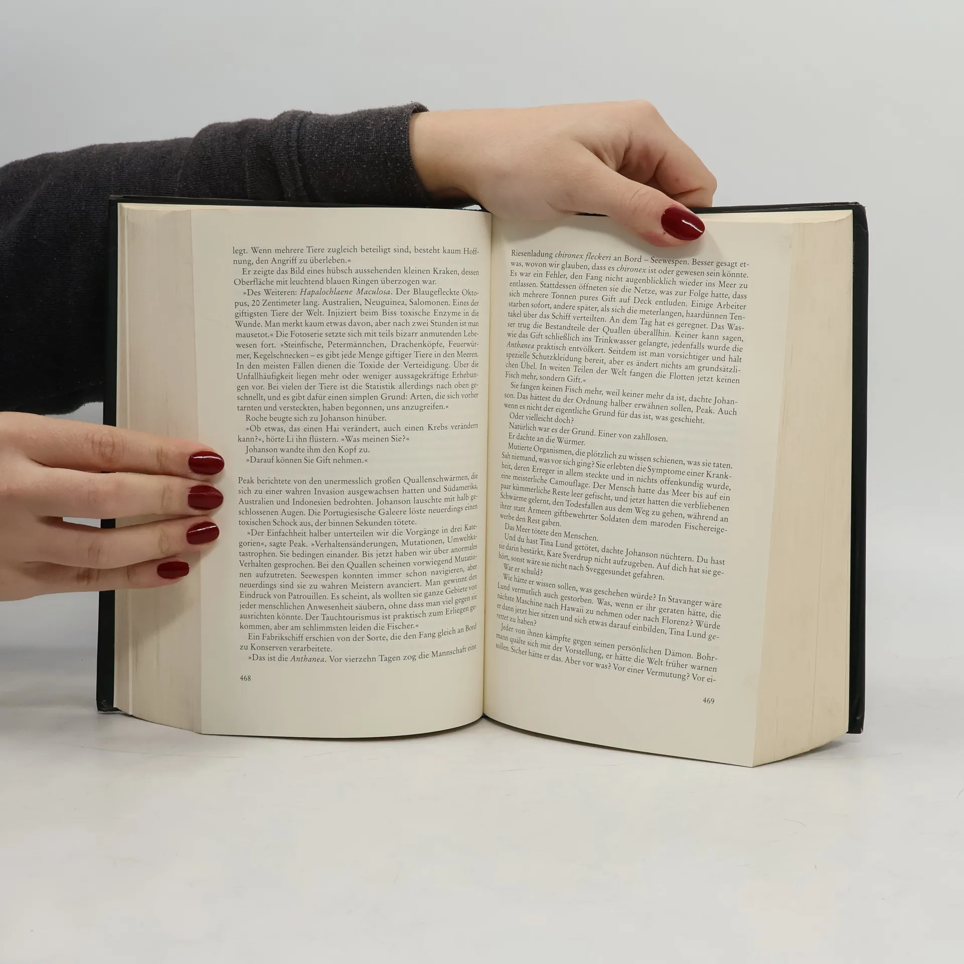 Irgentetwas ist anders in den Meeren. Schiffe verschwinden, Tiered verhalten sich anders... Habe erst das Hörspiel gehört, dann das Buch gelesen. Hat mir sehr gefallen. Teilweise etwas zuviel Agenten, aber alles andere sehr interessant. Schätzing hat die Idea aus einem Traum.