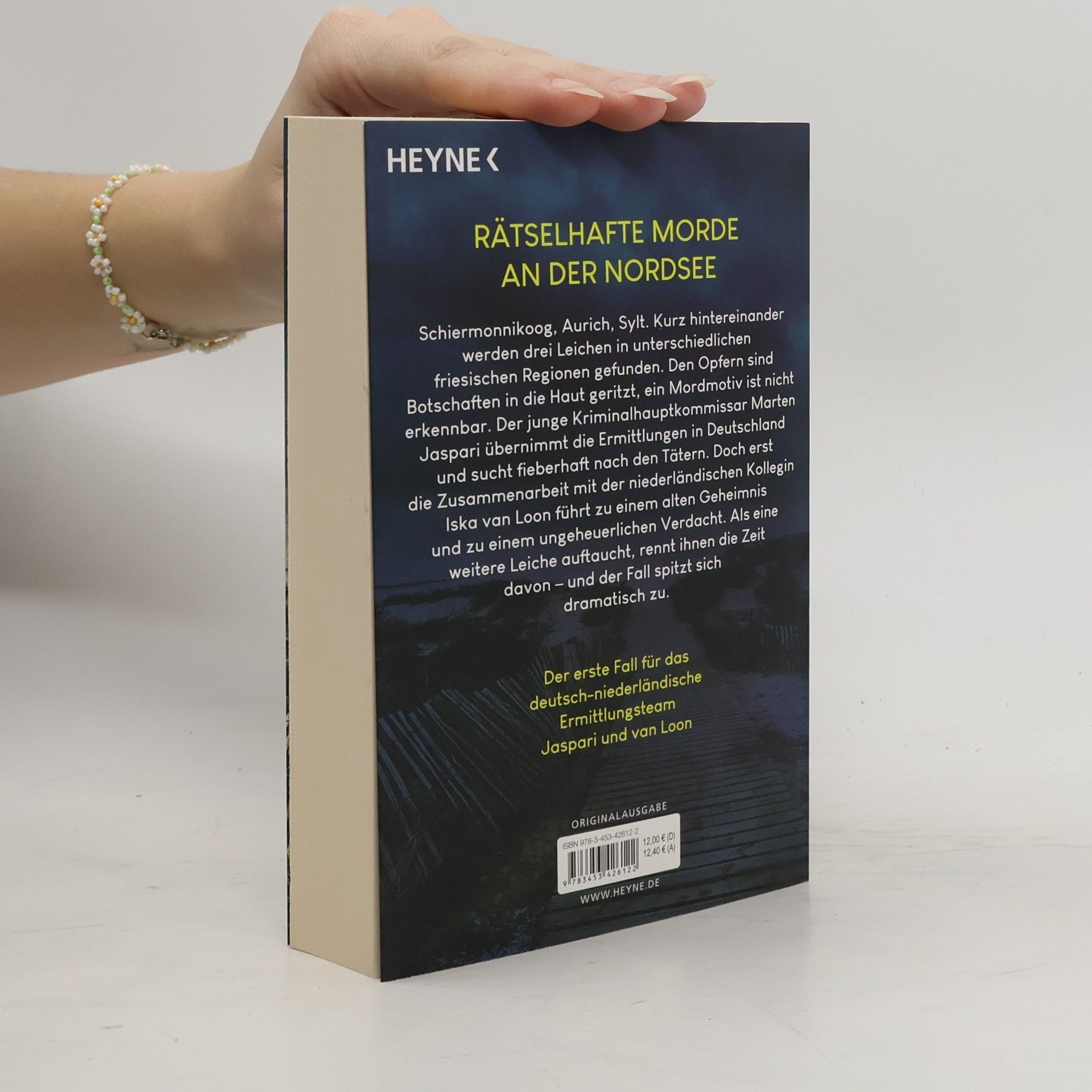 Rätselhafte Morde an der Nordsee Schiermonnikoog, Aurich, Sylt. Kurz hintereinander werden drei Leichen in unterschiedlichen friesischen Regionen gefunden. Den Opfern sind Botschaften in die Haut geritzt, ein Mordmotiv ist nicht erkennbar. Der junge Kriminalhauptkommissar Marten Jaspari übernimmt die Ermittlungen in Deutschland, stößt jedoch schnell an seine Grenzen. Erst die Zusammenarbeit mit der niederländischen Kollegin Iska van Loon führt zu einem alten Geheimnis und zu einem ungeheuerlichen Verdacht. Als eine weitere Leiche auftaucht, rennt ihnen die Zeit davon – und der Fall spitzt sich dramatisch zu.