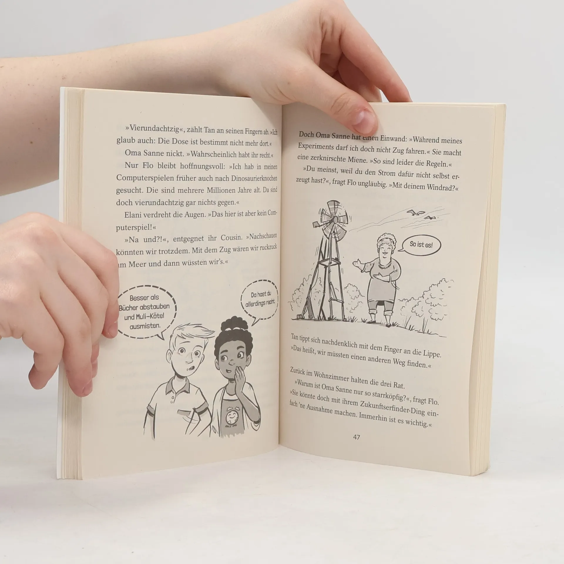 Wo bitte liegt Käseklo? Elani und ihr Cousin Flo verbringen die Ferien auf dem Aussteigerhof von Oma Sanne in Brandenburg. Doch anstelle von Ziegenmist und Langeweile erwartet die beiden ein spannender Roadtrip bis nach Usedom – und zwar mit Kutsche, denn Oma Sanne ist seit Neuestem Zukunftserfinderin und setzt sich für die Umwelt ein. Zusammen mit dem Nachbarsjungen Tan wollen sie an der Ostsee nach einem Familienschatz suchen. Werden es die vier Abenteuerlustigen ganz ohne technische Hilfsmittel bis ans Meer schaffen? Ausstattung: Mit s/w-Illustrationen