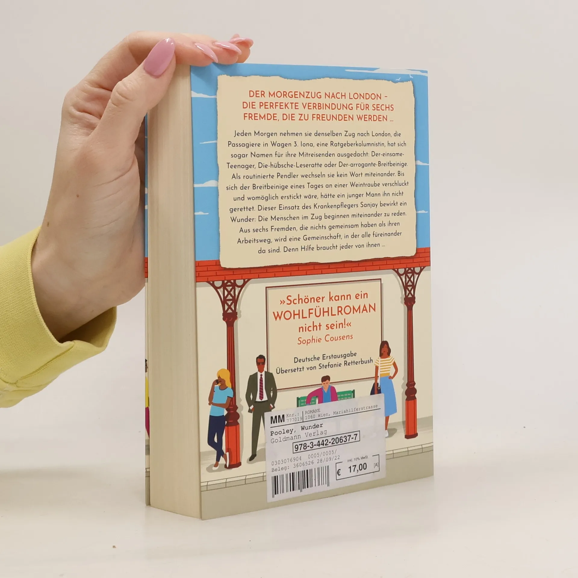Der neue herzerwärmende Roman der SPIEGEL-Bestsellerautorin von »Montags bei Monica«. »Schöner kann ein Wohlfühlroman nicht sein!« Sophie Cousens Jeden Morgen nehmen sie denselben Zug nach London, die Passagiere in Wagen 3. Iona, eine Ratgeberkolumnistin und extravagante Erscheinung, hat sich sogar Namen für ihre Mitreisenden ausgedacht: Der-einsame-Teenager, Die-hübsche-Leseratte oder Der-arrogante-Breitbeinige. Als routinierte Pendler wechseln sie kein Wort miteinander. Bis sich der Breitbeinige eines Tages an einer Weintraube verschluckt und womöglich erstickt wäre, hätte ein junger Mann ihn nicht gerettet. Dieser Einsatz des Krankenpflegers Sanjay bewirkt ein Wunder: Die Menschen im Zug beginnen miteinander zu reden. Aus sechs Fremden, die nichts gemeinsam haben als ihren Arbeitsweg, wird eine Gemeinschaft, in der alle füreinander da sind. Denn Hilfe braucht jeder von ihnen ... »Ein wunderbares Meisterwerk! Warmherzig, humorvoll, berührend und mit unvergesslichen Figuren.« Rosie Walsh