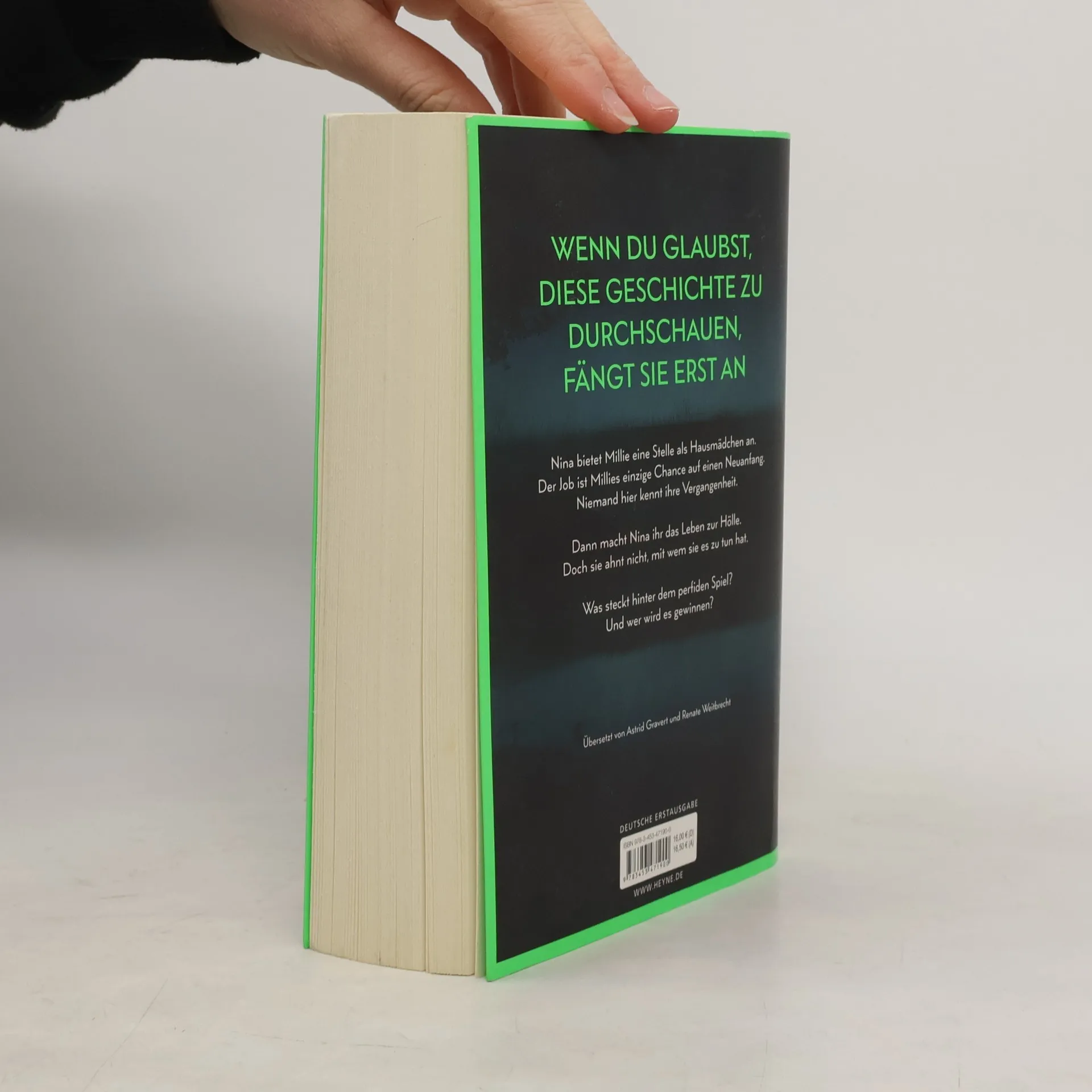 Wenn du glaubst, diese Geschichte zu durchschauen, fängt sie erst an Millie kann ihr Glück kaum fassen, als die elegante Nina ihr die Stelle als Haushaltshilfe inklusive Kost und Logis bei ihrer Familie auf Long Island anbietet. Schließlich hat sie eine Vergangenheit, von der niemand etwas wissen soll. Doch kaum ist Millie eingezogen, zeigt Nina ihr wahres Gesicht: Sie verwüstet das Haus und unterstellt ihr Dinge, die sie nicht getan hat. Ihre verwöhnte Tochter behandelt Millie ohne jeden Respekt. Nur Ninas attraktiver Mann Andrew ist nett zu ihr. Wäre da nur nicht Ninas wachsende Eifersucht. Hat sie Millie nur eingestellt, um ihr das Leben zur Hölle zu machen? Oder hat auch sie ein dunkles Geheimnis, von dem niemand etwas erfahren darf?