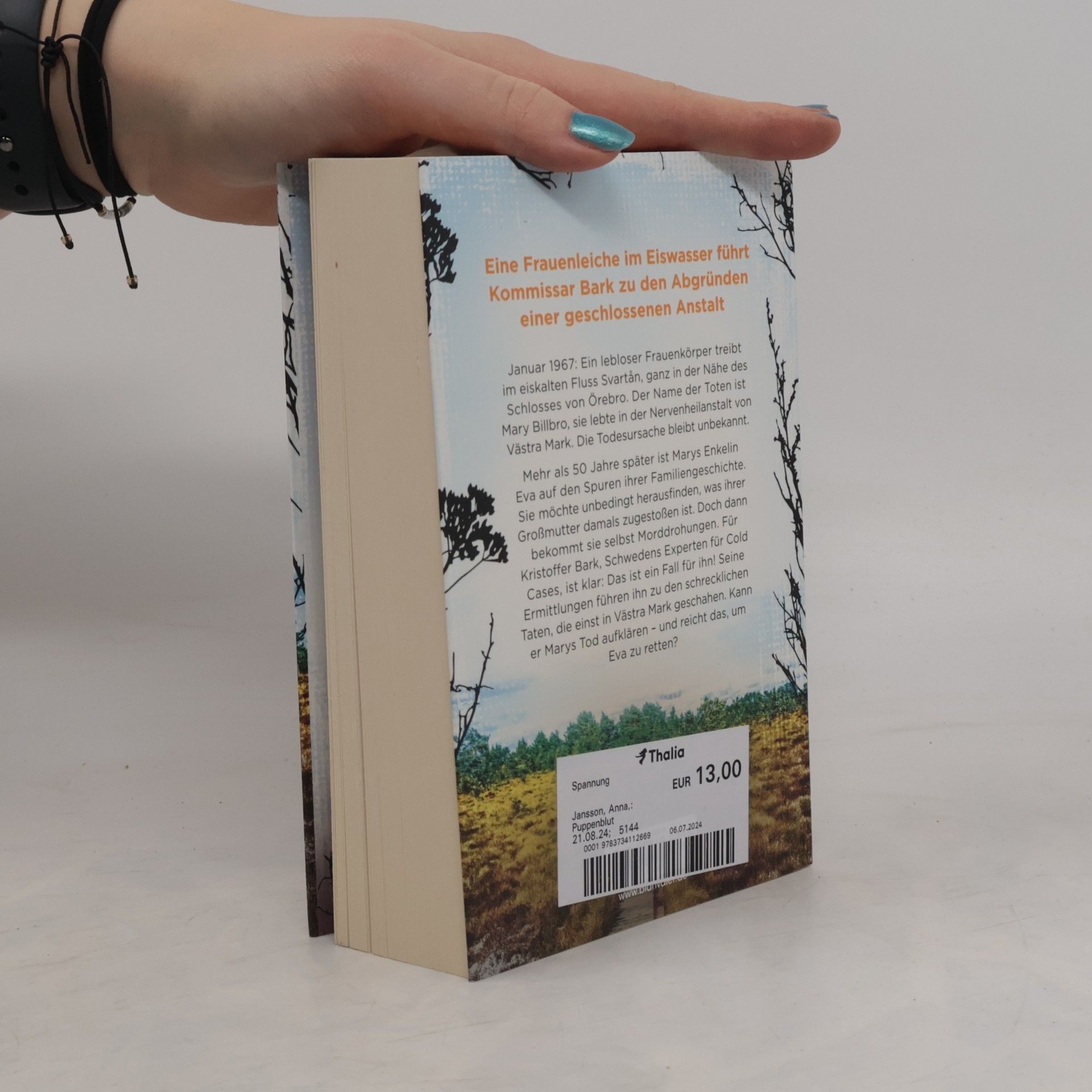 Eine Frauenleiche im Eiswasser führt Kommissar Kristoffer Bark in die dunkle Vergangenheit einer geschlossenen Nervenheilanstalt – welche Abgründe erwarten ihn bei seinem 3. Fall? Januar 1967: Ein lebloser Frauenkörper treibt im eiskalten Fluss Svartån, ganz in der Nähe des Schlosses von Örebro. Der Name der Toten ist Mary Billbro, sie lebte in der Nervenheilanstalt von Västra Mark. Die Todesursache bleibt unbekannt. Mehr als 50 Jahre später ist Marys Enkelin Eva auf den Spuren ihrer Familiengeschichte. Sie möchte unbedingt herausfinden, was ihrer Großmutter damals zugestoßen ist. Doch dann bekommt sie selbst Morddrohungen. Für Kristoffer Bark, Schwedens Experten für Cold Cases, ist klar: Das ist ein Fall für ihn! Seine Ermittlungen führen ihn zu den schrecklichen Taten, die einst in Västra Mark geschahen. Kann er Marys Tod aufklären – und reicht das, um Eva zu retten? Die »Kommissar Bark«-Reihe: Band 1: Leichenschilf Band 2: Witwenwald Band 3: Puppenblut Band 4: Mädchenfeuer Alle Bände können auch unabhängig voneinander gelesen werden.