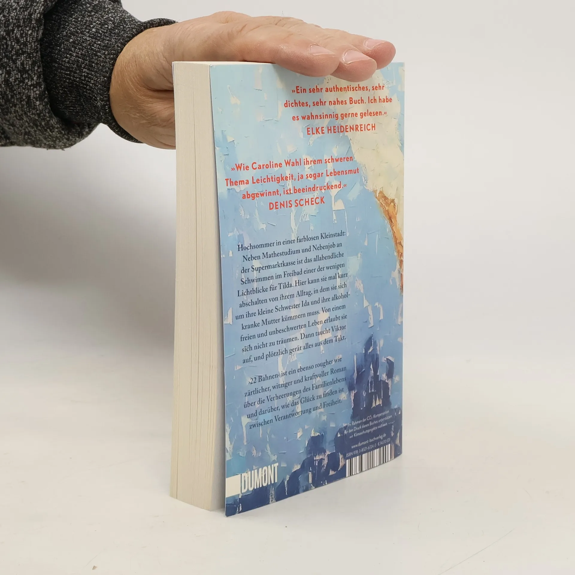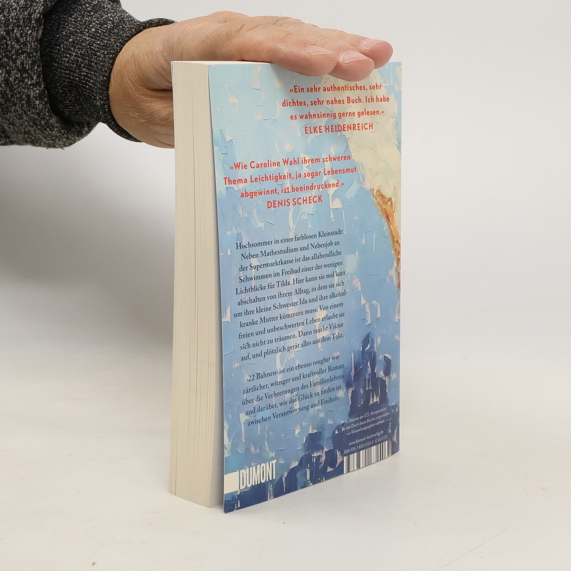 Tildas Tage sind strikt durchgetaktet: studieren, an der Supermarktkasse sitzen, sich um ihre kleine Schwester Ida kümmern und an schlechten Tagen auch um die Mutter. Zu dritt wohnen sie im traurigsten Haus der Fröhlichstraße in einer Kleinstadt, die Tilda hasst. Ihre Freunde sind längst weg, leben in Amsterdam oder Berlin, nur Tilda ist geblieben. Denn irgendjemand muss für Ida da sein, Geld verdienen, die Verantwortung tragen. Nennenswerte Väter gibt es keine, die Mutter ist alkoholabhängig. Eines Tages aber geraten die Dinge in Bewegung: Tilda bekommt eine Promotion in Berlin in Aussicht gestellt, und es blitzt eine Zukunft auf, die Freiheit verspricht. Und Viktor taucht auf, der große Bruder von Ivan, mit dem Tilda früher befreundet war. Viktor, der genau wie sie immer 22 Bahnen schwimmt. Doch als Tilda schon beinahe glaubt, es könnte alles gut werden, gerät die Situation zu Hause vollends außer Kontrolle. ›22 Bahnen‹ ist eine raue und gleichzeitig zärtliche Geschichte über die Verheerungen des Familienlebens und darüber, wie das Glück zu finden ist zwischen Verantwortung und Freiheit. »Caroline Wahl findet das Besondere im Alltäglichen und das Tröstliche im Schmerzvollen. Ein berührendes und feinsinniges Buch, mit dem man gern befreundet wäre.« BENEDICT WELLS »Ich bin durch ›22 Bahnen‹ gerauscht und hellauf begeistert. Herzerwärmend, fein, gnadenlos und richtig schön zugleich.« ALINA BRONSKY