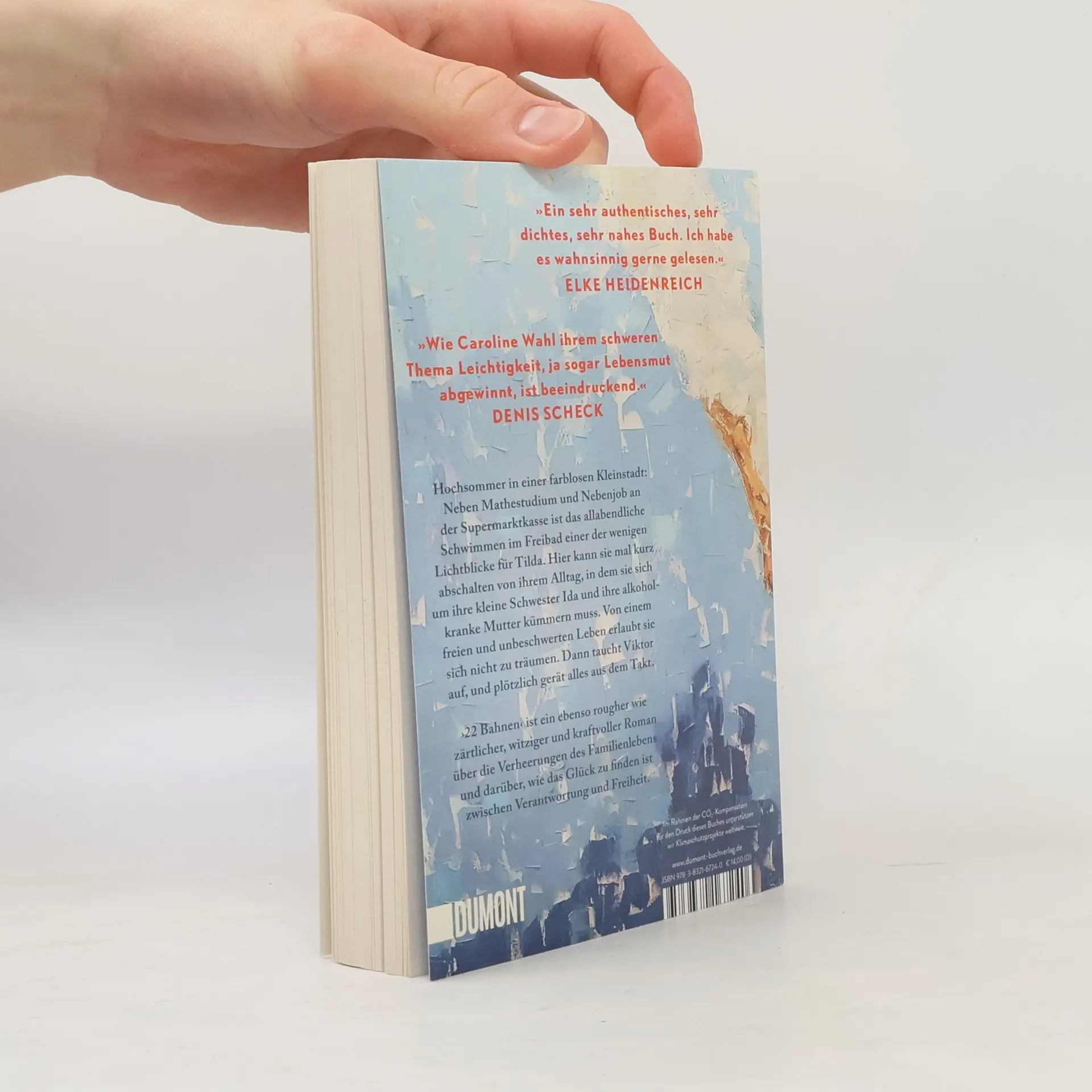 Tildas Tage sind strikt durchgetaktet: studieren, an der Supermarktkasse sitzen, sich um ihre kleine Schwester Ida kümmern und an schlechten Tagen auch um die Mutter. Zu dritt wohnen sie im traurigsten Haus der Fröhlichstraße in einer Kleinstadt, die Tilda hasst. Ihre Freunde sind längst weg, leben in Amsterdam oder Berlin, nur Tilda ist geblieben. Denn irgendjemand muss für Ida da sein, Geld verdienen, die Verantwortung tragen. Nennenswerte Väter gibt es keine, die Mutter ist alkoholabhängig. Eines Tages aber geraten die Dinge in Bewegung: Tilda bekommt eine Promotion in Berlin in Aussicht gestellt, und es blitzt eine Zukunft auf, die Freiheit verspricht. Und Viktor taucht auf, der große Bruder von Ivan, mit dem Tilda früher befreundet war. Viktor, der genau wie sie immer 22 Bahnen schwimmt. Doch als Tilda schon beinahe glaubt, es könnte alles gut werden, gerät die Situation zu Hause vollends außer Kontrolle. ›22 Bahnen‹ ist eine raue und gleichzeitig zärtliche Geschichte über die Verheerungen des Familienlebens und darüber, wie das Glück zu finden ist zwischen Verantwortung und Freiheit. »Caroline Wahl findet das Besondere im Alltäglichen und das Tröstliche im Schmerzvollen. Ein berührendes und feinsinniges Buch, mit dem man gern befreundet wäre.« BENEDICT WELLS »Ich bin durch ›22 Bahnen‹ gerauscht und hellauf begeistert. Herzerwärmend, fein, gnadenlos und richtig schön zugleich.« ALINA BRONSKY