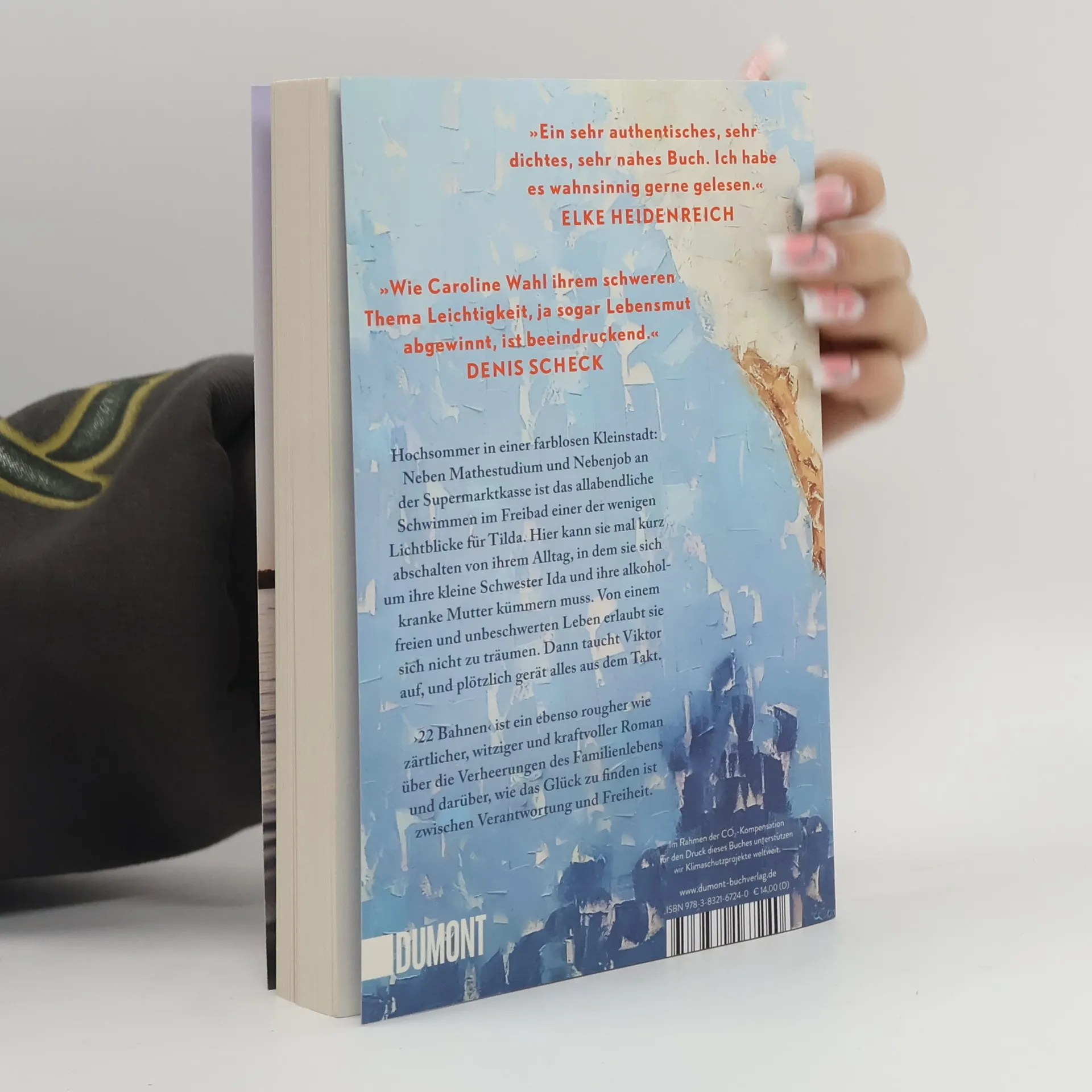 Tildas Tage sind strikt durchgetaktet: studieren, an der Supermarktkasse sitzen, sich um ihre kleine Schwester Ida kümmern und an schlechten Tagen auch um die Mutter. Zu dritt wohnen sie im traurigsten Haus der Fröhlichstraße in einer Kleinstadt, die Tilda hasst. Ihre Freunde sind längst weg, leben in Amsterdam oder Berlin, nur Tilda ist geblieben. Denn irgendjemand muss für Ida da sein, Geld verdienen, die Verantwortung tragen. Nennenswerte Väter gibt es keine, die Mutter ist alkoholabhängig. Eines Tages aber geraten die Dinge in Bewegung: Tilda bekommt eine Promotion in Berlin in Aussicht gestellt, und es blitzt eine Zukunft auf, die Freiheit verspricht. Und Viktor taucht auf, der große Bruder von Ivan, mit dem Tilda früher befreundet war. Viktor, der genau wie sie immer 22 Bahnen schwimmt. Doch als Tilda schon beinahe glaubt, es könnte alles gut werden, gerät die Situation zu Hause vollends außer Kontrolle. ›22 Bahnen‹ ist eine raue und gleichzeitig zärtliche Geschichte über die Verheerungen des Familienlebens und darüber, wie das Glück zu finden ist zwischen Verantwortung und Freiheit. »Caroline Wahl findet das Besondere im Alltäglichen und das Tröstliche im Schmerzvollen. Ein berührendes und feinsinniges Buch, mit dem man gern befreundet wäre.« BENEDICT WELLS »Ich bin durch ›22 Bahnen‹ gerauscht und hellauf begeistert. Herzerwärmend, fein, gnadenlos und richtig schön zugleich.« ALINA BRONSKY