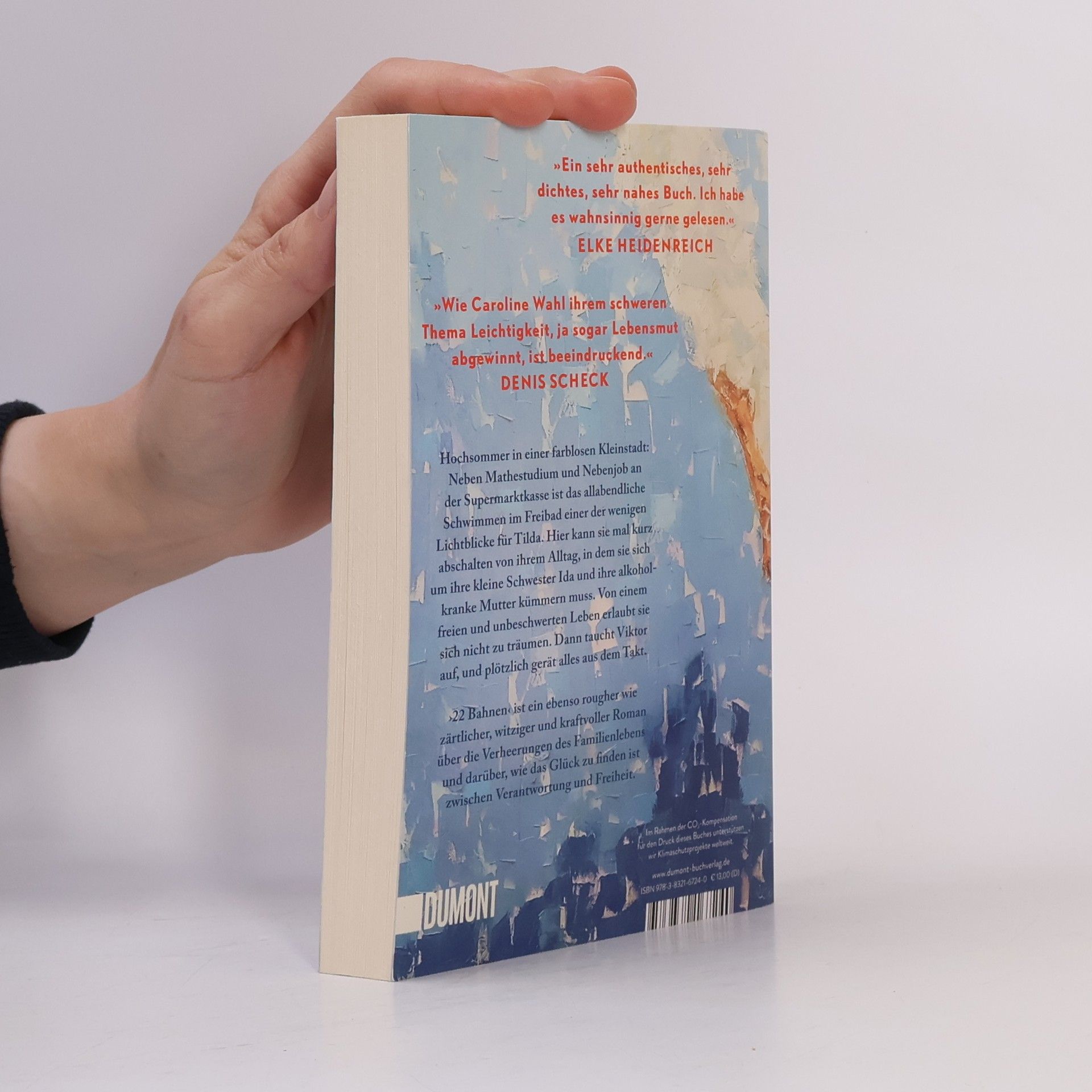 Tildas Tage sind strikt durchgetaktet: studieren, an der Supermarktkasse sitzen, sich um ihre kleine Schwester Ida kümmern und an schlechten Tagen auch um die Mutter. Zu dritt wohnen sie im traurigsten Haus der Fröhlichstraße in einer Kleinstadt, die Tilda hasst. Ihre Freunde sind längst weg, leben in Amsterdam oder Berlin, nur Tilda ist geblieben. Denn irgendjemand muss für Ida da sein, Geld verdienen, die Verantwortung tragen. Nennenswerte Väter gibt es keine, die Mutter ist alkoholabhängig. Eines Tages aber geraten die Dinge in Bewegung: Tilda bekommt eine Promotion in Berlin in Aussicht gestellt, und es blitzt eine Zukunft auf, die Freiheit verspricht. Und Viktor taucht auf, der große Bruder von Ivan, mit dem Tilda früher befreundet war. Viktor, der genau wie sie immer 22 Bahnen schwimmt. Doch als Tilda schon beinahe glaubt, es könnte alles gut werden, gerät die Situation zu Hause vollends außer Kontrolle. ›22 Bahnen‹ ist eine raue und gleichzeitig zärtliche Geschichte über die Verheerungen des Familienlebens und darüber, wie das Glück zu finden ist zwischen Verantwortung und Freiheit. »Caroline Wahl findet das Besondere im Alltäglichen und das Tröstliche im Schmerzvollen. Ein berührendes und feinsinniges Buch, mit dem man gern befreundet wäre.« BENEDICT WELLS »Ich bin durch ›22 Bahnen‹ gerauscht und hellauf begeistert. Herzerwärmend, fein, gnadenlos und richtig schön zugleich.« ALINA BRONSKY