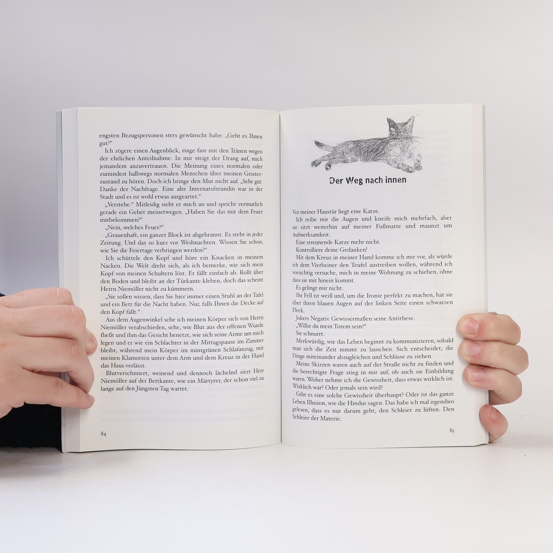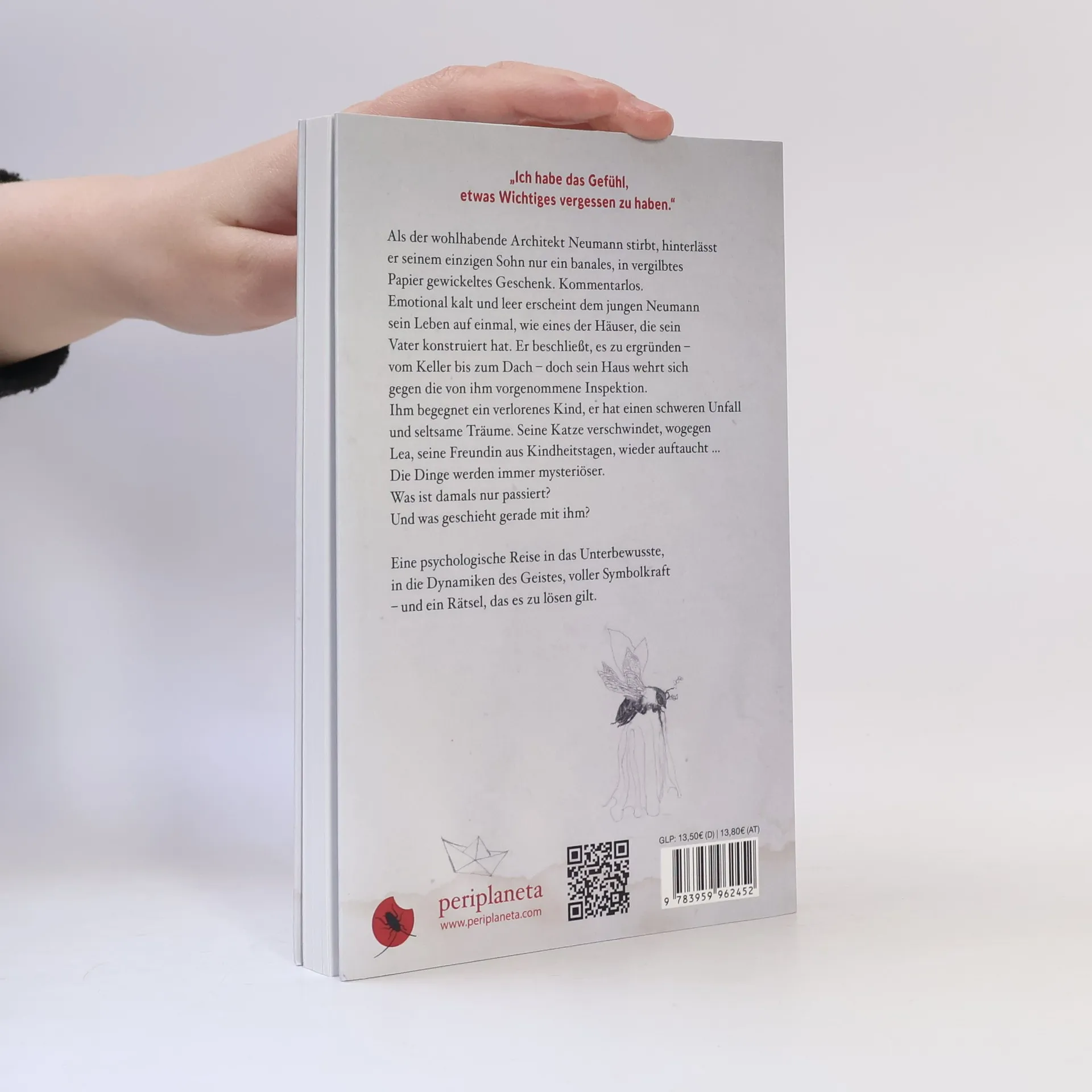 „Ich habe das Gefühl, etwas Wichtiges vergessen zu haben.“ Als der wohlhabende Architekt Neumann stirbt, hinterlässt er seinem einzigen Sohn nur ein banales, in vergilbtes Papier gewickeltes Geschenk. Kommentarlos. Emotional kalt und leer erscheint dem jungen Neumann sein Leben auf einmal; wie eines der Häuser, die sein Vater konstruiert hat. Er beschließt, es zu ergründen – vom Keller bis zum Dach – doch sein Haus wehrt sich gegen die von ihm vorgenommene Inspektion. Ihm begegnet ein verlorenes Kind, er hat einen schweren Unfall und seltsame Träume. Seine Katze verschwindet, wogegen seine Kindheitsfreundin Lea wieder auftaucht ... Die Dinge werden immer mysteriöser. Was ist damals nur passiert und was geschieht gerade mit ihm? Eine psychologische Reise in das Unterbewusste, in die Dynamiken des Geistes, voller Symbolkraft – und ein Rätsel, das es zu lösen gilt. Eine Novelle mit Illustrationen von Ariane Königshof