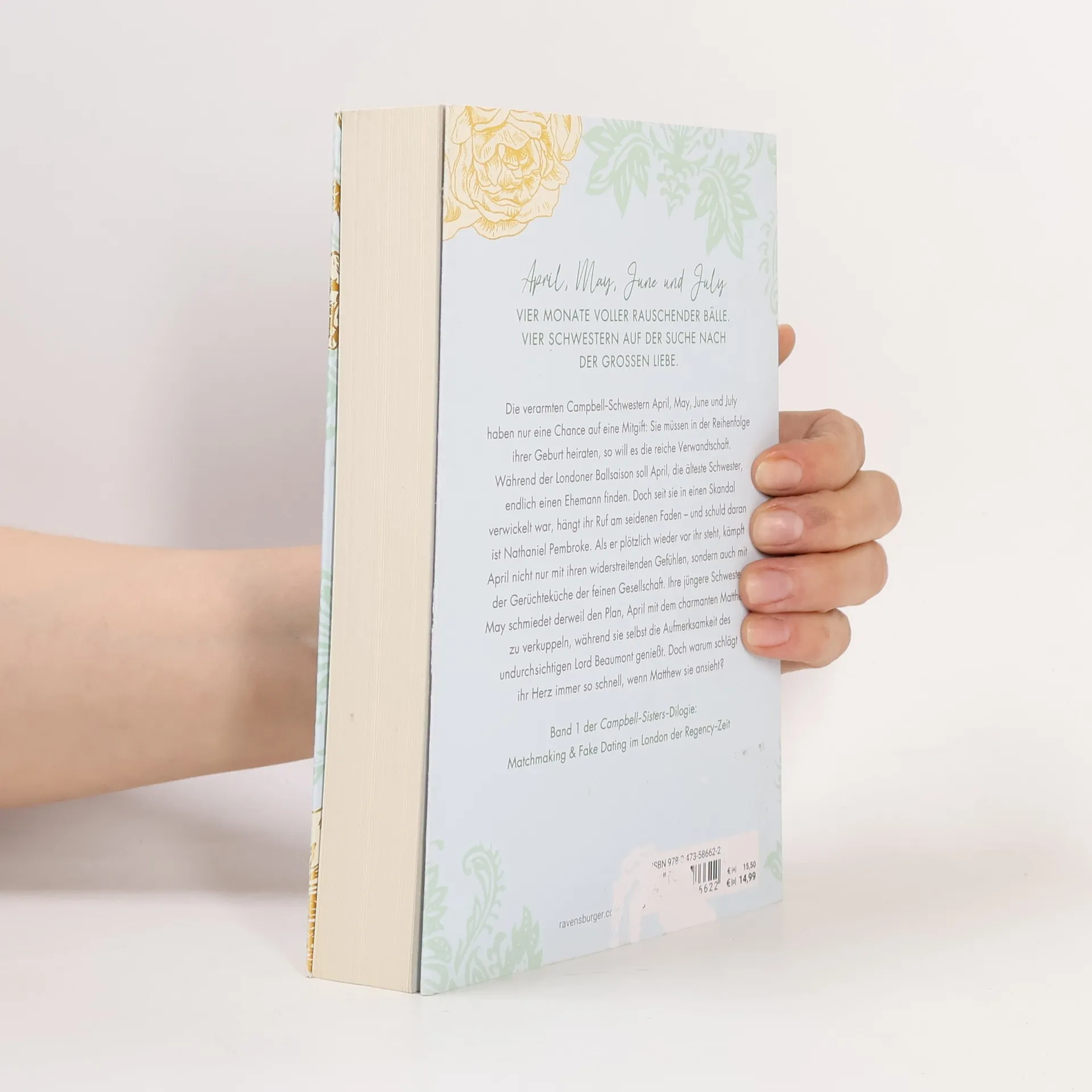 April, May, June und July: Vier Monate voller rauschender Bälle. Vier Schwestern auf der Suche nach der großen Liebe. Die Campbell-Schwestern April, May, June und July haben nur eine Chance auf eine Mitgift: Sie müssen in der Reihenfolge ihrer Geburt heiraten. Doch April, die Älteste, hat bei ihrer letzten Ballsaison nicht nur ihr Herz, sondern auch ihren guten Ruf verloren – und schuld daran ist Nathaniel Pembroke. May will ihre Schwester unbedingt verkuppeln, während sie selbst mit Lord Richard flirtet. Doch dann kehrt Nathaniel nach London zurück und plötzlich machen erneut Gerüchte über April die Runde … Band 1 der sinnlichen Campbell-Sisters-Dilogie: Matchmaking & Fake Dating im London der Regency-Zeit In Band 1 geht es um die beiden älteren Campbell-Schwestern April und May, in Band 2 geht es um die beiden jüngeren Campbell-Schwestern June und July.