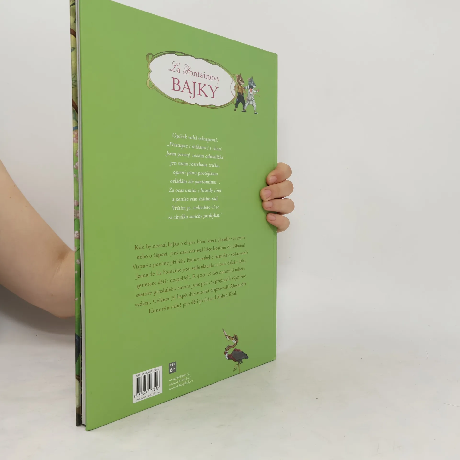 Nejznámější příběhy francouzské literatury ani po 360 letech neztrácejí na aktuálnosti a stále baví děti po celém světě. Znovu a znovu čtou nové generace bajky O lišce a čápu či O lišce a vráně a mnoho dalších, které vyšly z pera Jeana de La Fontaina a svým vtipem a chytrostí jsou zcela nadčasové. K 400. výročí narození tohoto fenomenálního spisovatele a básníka vychází výpravné vydání jeho bajek, jež svými ilustracemi doprovodil Alexandre Honoré a do českého jazyka volně přebásnil Robin Král.