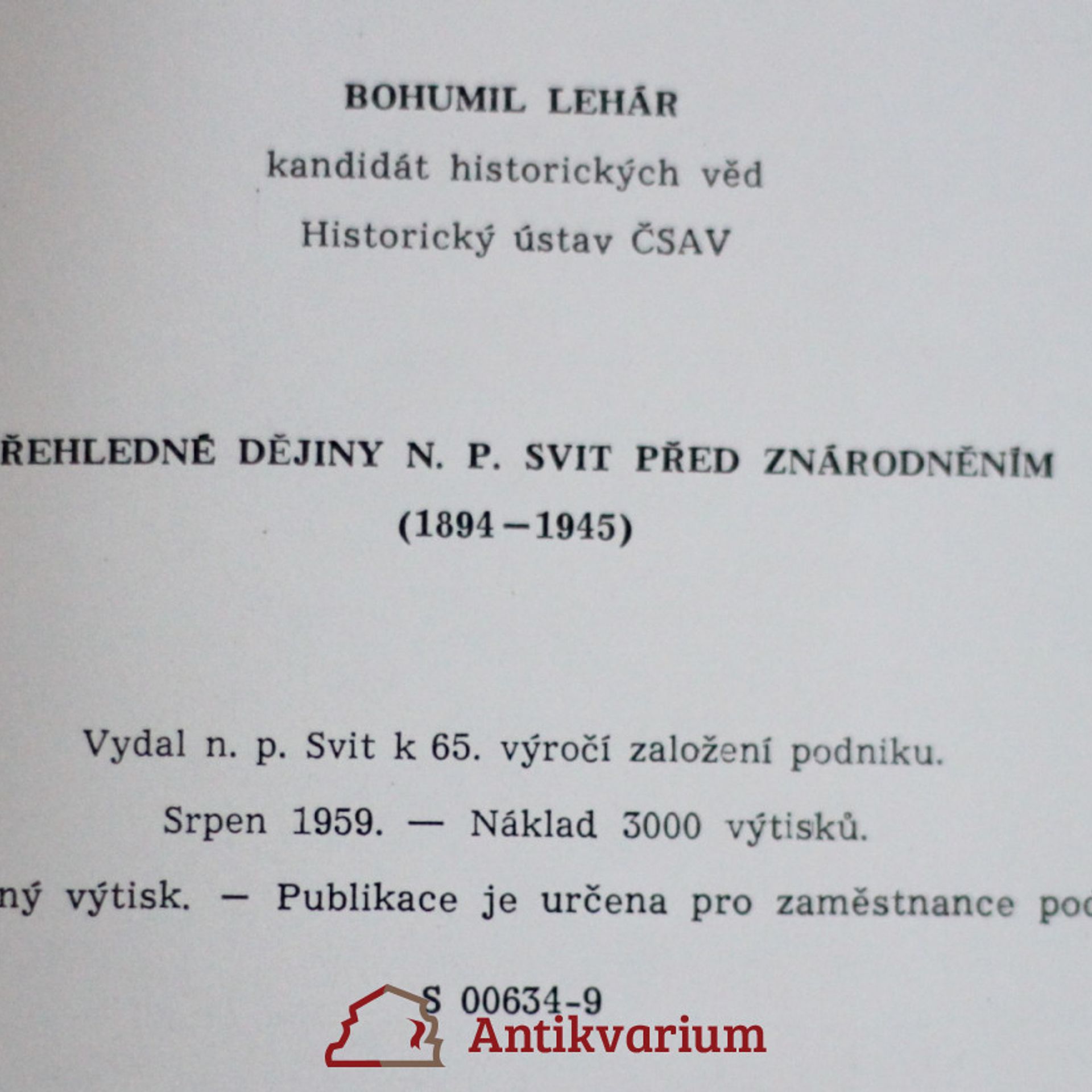 Přehledné dějiny národního podniku Svit před znárodněním 1894-1945, Bohumil Lehár, Svit Gottwaldov