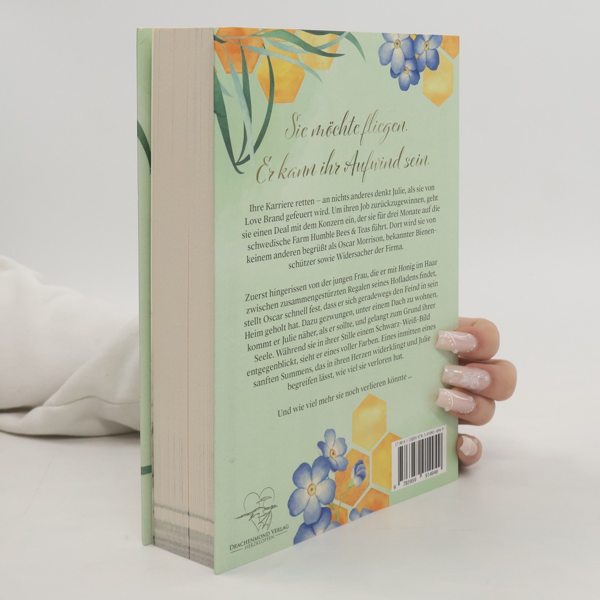 Sie möchte fliegen. Er kann ihr Aufwind sein. Ihre Karriere retten - an nichts anderes denkt Julie, als sie von Love Brand gefeuert wird. Um ihren Job zurückzugewinnen, geht sie einen Deal mit dem Konzern ein, der sie für drei Monate auf die schwedische Farm Humble Bees & Teas führt. Dort wird sie von keinem anderen begrüßt als Oscar Morrison, bekannter Bienenschützer sowie Widersacher der Firma. Zuerst hingerissen von der jungen Frau, die er mit Honig im Haar zwischen zusammengestürzten Regalen seines Hofladens findet, stellt Oscar schnell fest, dass er sich geradewegs den Feind in sein Heim geholt hat. Dazu gezwungen, unter einem Dach zu wohnen, kommt er Julie näher, als er sollte, und gelangt zum Grund ihrer Seele. Während sie in ihrer Stille einem Schwarz-Weiß-Bild entgegenblickt, sieht er eines voller Farben. Eines inmitten eines sanften Summens, das in ihren Herzen widerklingt und Julie begreifen lässt, wie viel sie verloren hat. Und wie viel mehr sie noch verlieren könnte …