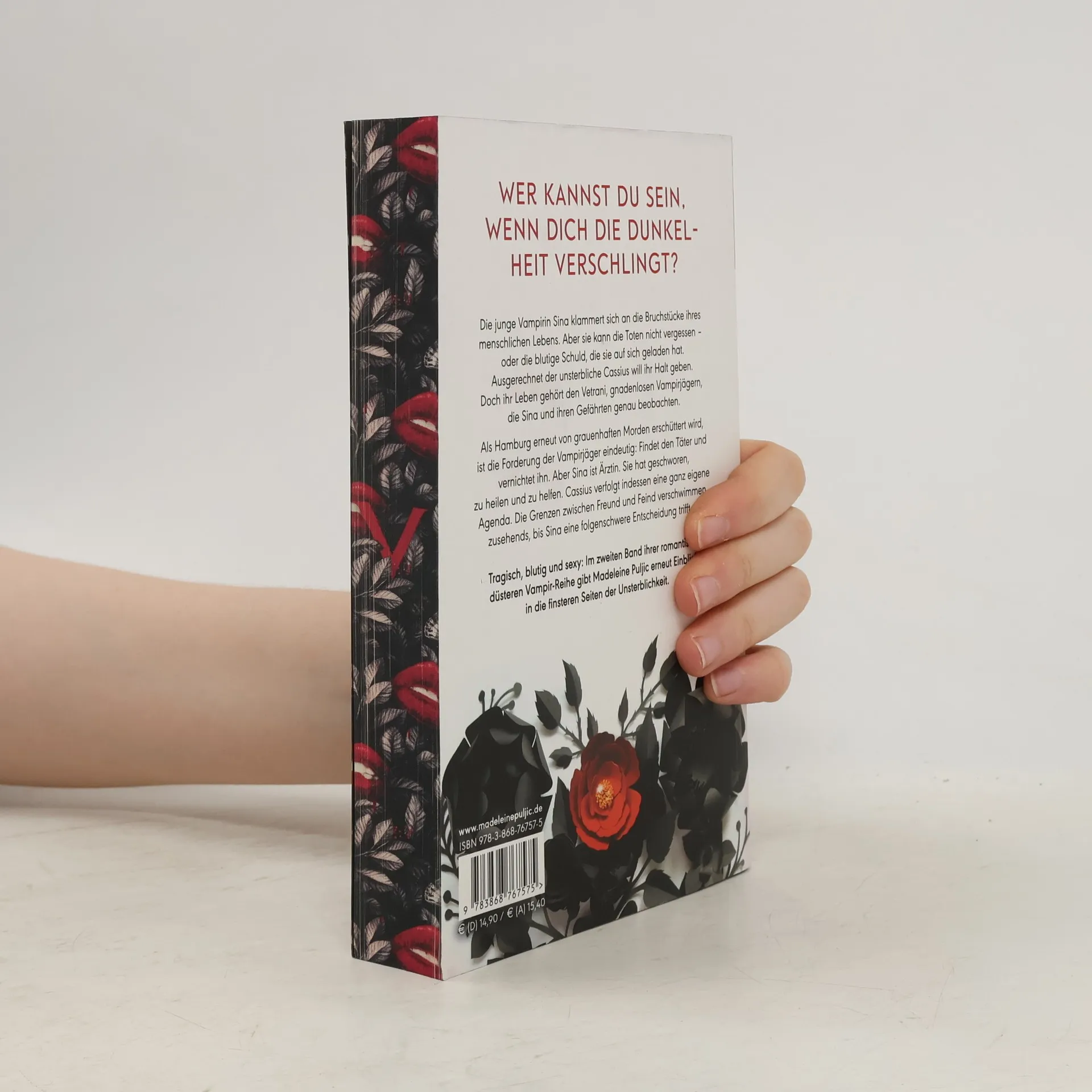 Wer kannst du sein, wenn dich die Dunkelheit verschlingt? Die junge Vampirin Sina klammert sich an die Bruchstücke ihres menschlichen Lebens. Aber sie kann die Toten nicht vergessen – oder die blutige Schuld, die sie auf sich geladen hat. Ausgerechnet der unsterbliche Cassius will ihr Halt geben. Doch ihr Leben gehört den Vetrani, gnadenlosen Vampirjägern, die Sina und ihren Gefährten genau beobachten. Als Hamburg erneut von grauenhaften Morden erschüttert wird, ist die Forderung der Vampirjäger eindeutig: Findet den Täter und vernichtet ihn. Aber Sina ist Ärztin. Sie hat geschworen, zu heilen und zu helfen. Cassius verfolgt indessen eine ganz eigene Agenda. Die Grenzen zwischen Freund und Feind verschwimmen zusehends, bis Sina eine folgenschwere Entscheidung trifft … Tragisch, blutig und sexy: Im zweiten Band ihrer romantisch-düsteren Vampir-Reihe gibt Madeleine Puljic erneut Einblick in die finsteren Seiten der Unsterblichkeit.