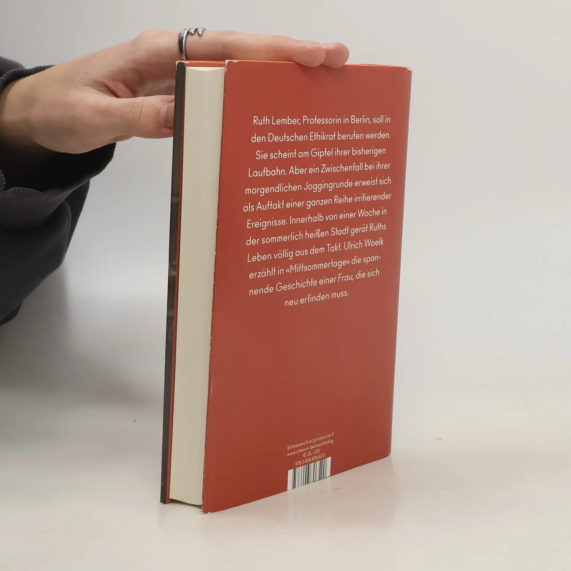 Ruth Lember, eine erfolgreiche Ethikprofessorin in Berlin, steht kurz vor ihrer Ernennung zum Mitglied des Deutschen Ethikrats. Ihr Leben scheint perfekt: Ihr Mann Ben hat einen Architekturwettbewerb gewonnen, und ihre Ziehtochter Jenny studiert in Leipzig. Doch ein Vorfall während ihrer morgendlichen Joggingrunde, als sie von einem nicht angeleinten Hund gebissen wird, markiert den Beginn einer Reihe unerwarteter Ereignisse, die Ruths Leben aus der Bahn werfen. Die Wunde, die sie davonträgt, bleibt nicht nur physisch, sondern wird zum Symbol für die aufkommenden Herausforderungen. Ein alter Freund taucht auf und konfrontiert sie mit ihrer politischen Vergangenheit als Umweltaktivistin, die sie geheim gehalten hat. Diese Enthüllung könnte nicht nur ihre Karriere, sondern auch ihre Ehe gefährden. Während die Ereignisse sich überschlagen, wird Ruth gezwungen, sich mit ihrer Identität und den Entscheidungen, die sie getroffen hat, auseinanderzusetzen. Ulrich Woelk erzählt in seinem fesselnden Roman von einer entscheidenden Woche im Sommer 2022 in Berlin, in der eine Frau gezwungen wird, sich neu zu erfinden und die Frage aufwirft, ob wir unsere Lebensentscheidungen jemals vollständig verstehen können.