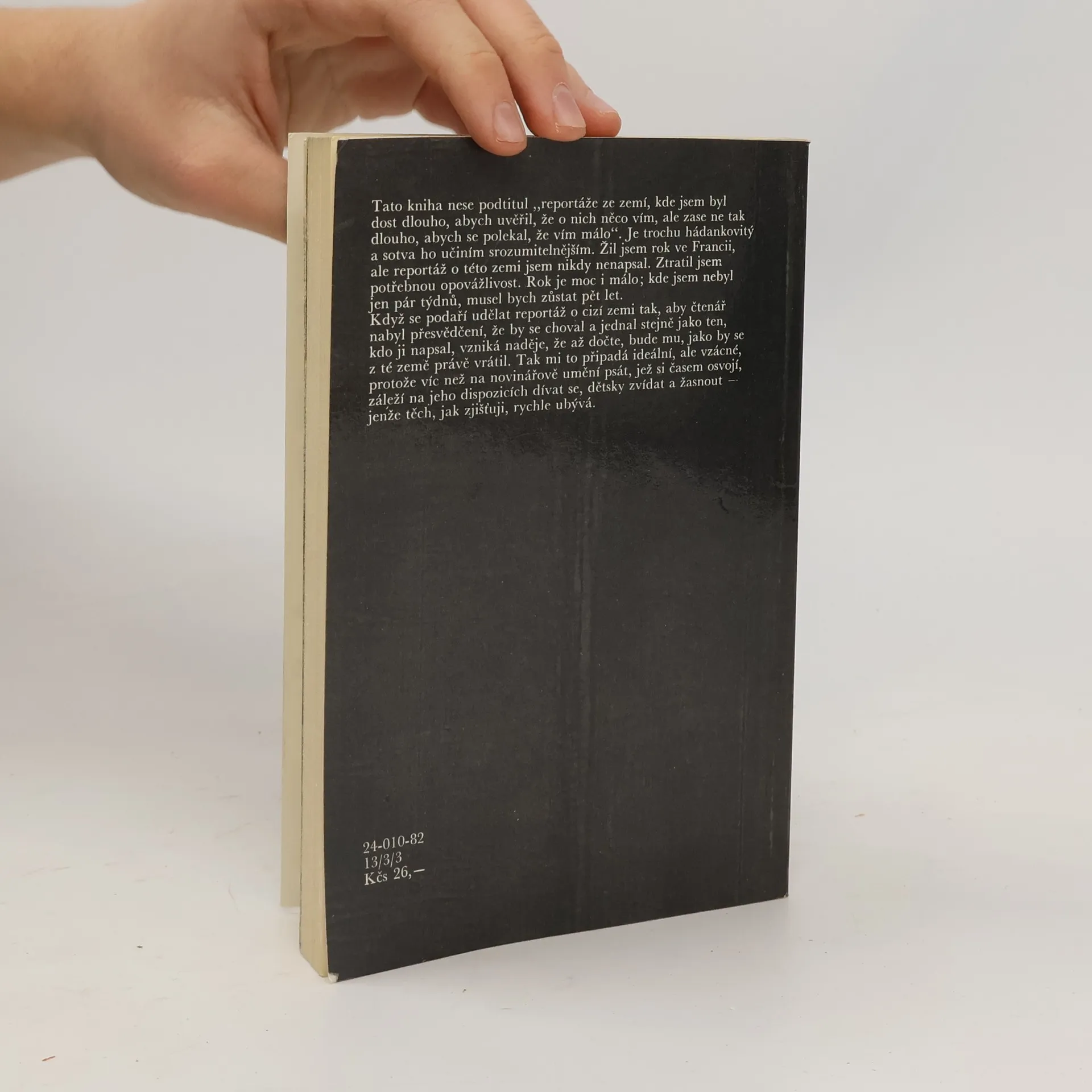 Tato kniha nese podtitul 'reportáže ze zemí, kde jsem byl dost dlouho, abych uvěřil, že o nich něco vím, ale zase ne tak dlouho, abych se polekal, že vím málo'. Je trochu hádankovitý a sotva ho učiním srozumitelnějším. Žil jsem rok ve Francii, ale reportáž o této zemi jsem nikdy nenapsal. Ztratil jsem potřebnou opovážlivost. Rok je moc i málo; kde jsem nebyl jen pár týdnů, musel bych zůstat pět let. Když se podaří udělat reportáž o cizí zemi tak, aby čtenář nabyl přesvědčení, že by se choval a jednal stejně jako ten, kdo ji napsal, vzniká naděje , že až dočte, bude mu, jako by se z té země právě vrátil. Tak mi to připadá ideální, ale vzácné, protože víc než na novinářově umění psát, jež si časem osvojí, záleží na jeho dipozicích dívat se, dětsky zvídat a žasnout - jenže těch, jak zjišťuji, rychle ubývá. Obsah: Tulákem po Orientě, Vězněm v Angole, Přes Kostarické ploty, Křížem krážem Alžírem, V City bez buřinky, Nehinduista na březích Gangy, Bejrútský pamětník, Kožešnický učeň, Lovcem orchidejí.