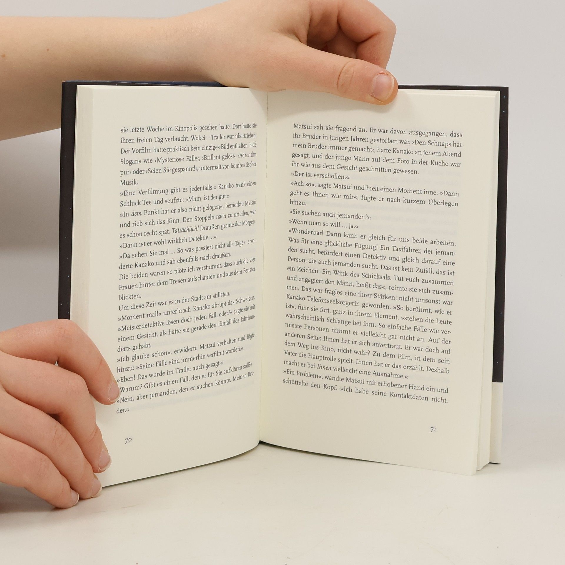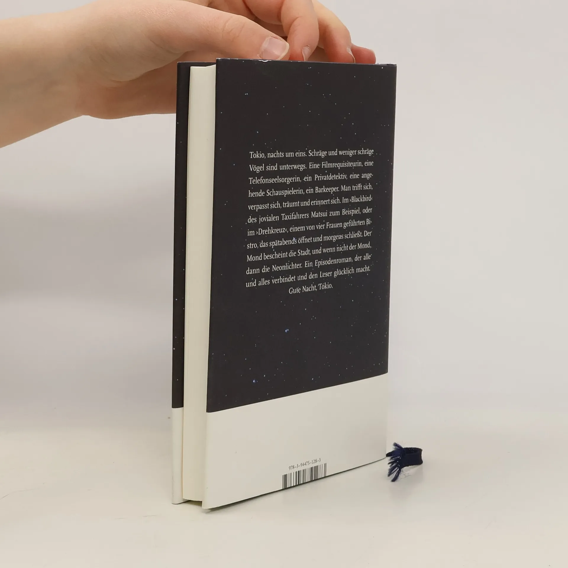 Tokyo, nachts um eins. Schräge und weniger schräge Vögel sind unterwegs. Eine Filmrequisiteurin, eine Telefonseelsorgerin, ein Privatdetektiv, eine angehende Schauspielerin, ein Barkeeper. Man trifft sich, verpasst sich, träumt und erinnert sich. Im ›Blackbird‹ des jovialen Taxifahrers Matsui zum Beispiel, oder im ›Drehkreuz‹, einem von vier Frauen geführten Imbiss, der spätabends öffnet und morgens schließt. Der Mond bescheint die Stadt, und wenn nicht der Mond, dann die Neonlichter. Ein Episodenroman, der alle und alles verbindet und den Leser glücklich macht. Gute Nacht, Tokyo. Deutsche Erstausgabe.