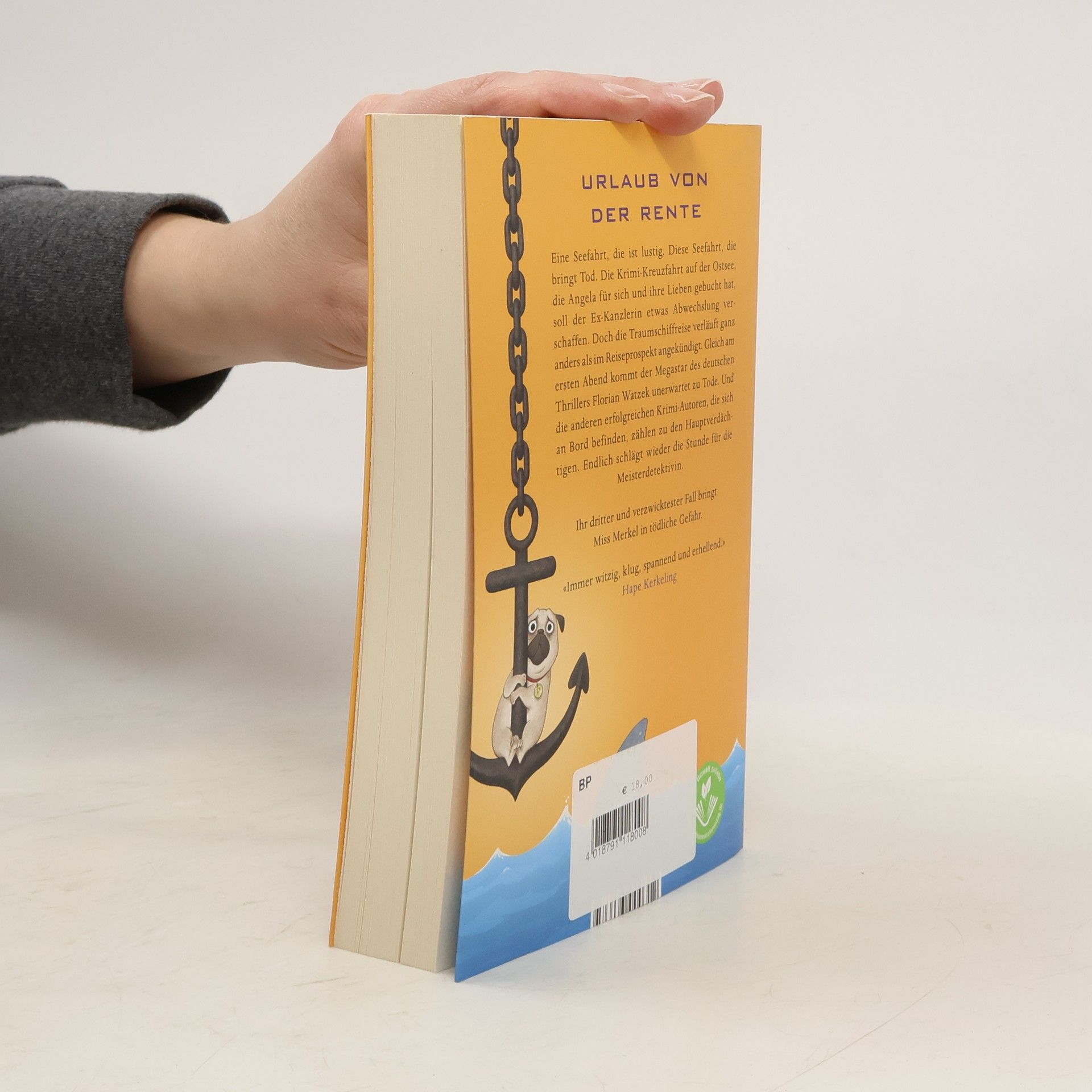URLAUB VON DER RENTE  Eine Seefahrt, die ist lustig. Diese Seefahrt, die bringt Tod. Die Krimi-Kreuzfahrt auf der Ostsee, die Angela für sich und ihre Lieben gebucht hat, soll der Ex-Kanzlerin etwas Abwechslung verschaffen. Doch die Traumschiffreise verläuft ganz anders als im Reiseprospekt  angekündigt. Gleich am ersten Abend kommt der Megastar des deutschen Thrillers Florian Watzek unerwartet zu Tode. Und die anderen erfolgreichen Krimiautoren, die sich an Bord befinden, zählen zu den Hauptverdächtigen. Endlich schlägt wieder die Stunde für die Meisterdetektivin. Ihr dritter und verzwicktester Fall bringt Miss Merkel in tödliche Gefahr.  «Immer witzig, klug, spannend und erhellend.»Hape Kerkeling