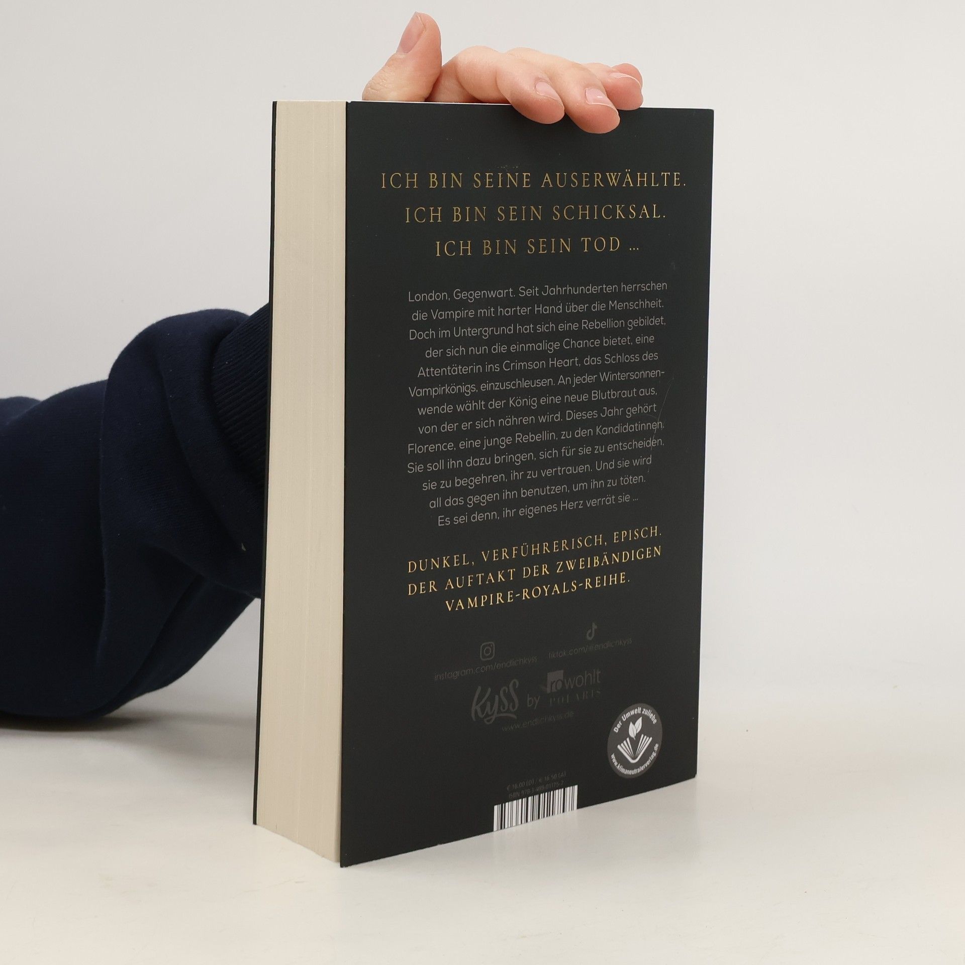Der Auftakt der zweibändigen Vampire-Royals-Reihe. Für alle Fans von Tracy Wolff und Scarlett St. Clair. Ich bin seine Auserwählte. Ich bin sein Schicksal. Ich bin sein Tod … London, Gegenwart. Seit Jahrhunderten herrschen die Vampire mit harter Hand über die Menschheit. Doch im Untergrund hat sich eine Rebellion gebildet. Eine Gruppe von Menschen, die nicht länger bereit ist, diese Unterdrückung hinzunehmen. Auch Florence ist Teil des Widerstands und wurde von Geburt an auf ihre bevorstehende Aufgabe vorbereitet. Mit ihr hat die Rebellion erstmals die Chance, eine Attentäterin ins Crimson Heart, das Schloss des Vampirkönigs, einzuschleusen. An jeder Wintersonnenwende wählt der König eine neue Blutbraut aus, von der er sich nähren wird. Und dieses Jahr gehört Florence zu den Kandidatinnen. Sie soll ihn dazu bringen, sich für sie zu entscheiden, sie zu begehren, ihr zu vertrauen. Und sie wird all das gegen ihn benutzen, um ihn zu töten. Es sei denn, ihr eigenes Herz verrät sie …