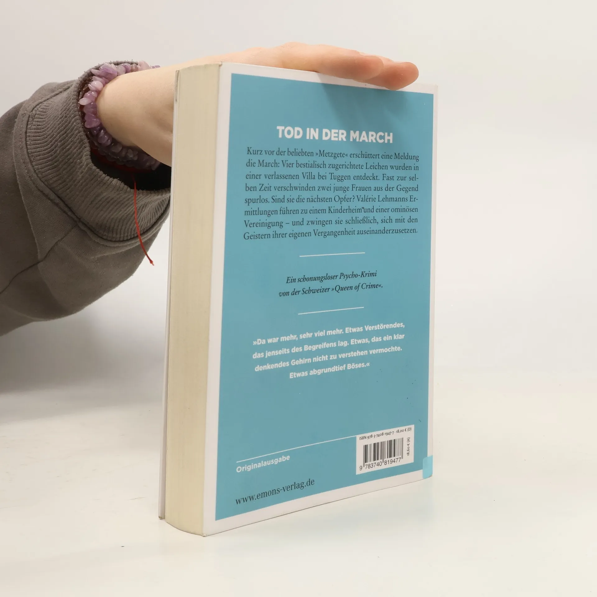 Ein schonungsloser Psycho-Krimi von der Schweizer »Queen of Crime«. Düster, aufwühlend und raffiniert konstruiert. Kurz vor der beliebten »Metzgete« erschüttert eine Meldung die March: Vier bestialisch zugerichtete Leichen wurden in einer verlassenen Villa bei Tuggen entdeckt. Fast zur selben Zeit verschwinden zwei junge Frauen aus der Gegend spurlos. Sind sie die nächsten Opfer? Valérie Lehmanns Ermittlungen führen zu einem Kinderheim und einer ominösen Vereinigung – und zwingen sie schließlich, sich mit den Geistern ihrer eigenen Vergangenheit auseinanderzusetzen.