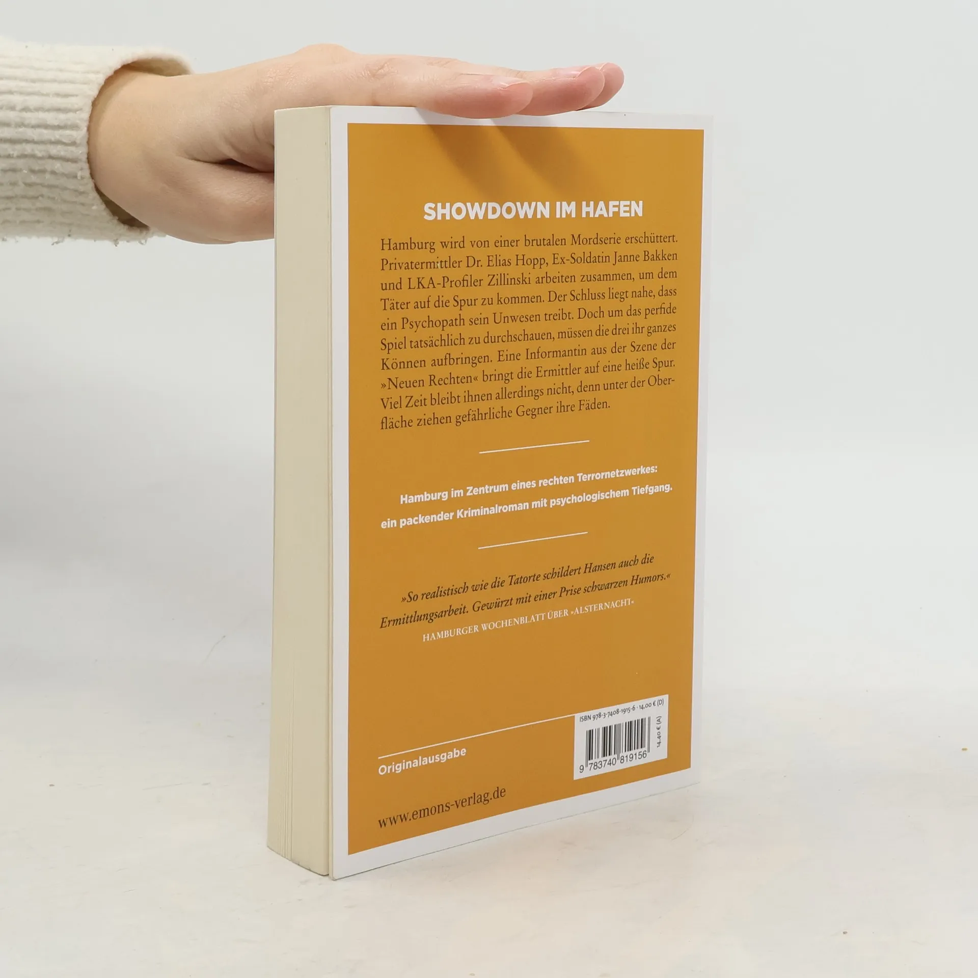 Ein packender Kriminalroman mit psychologischem Tiefgang. Hamburg wird von einer brutalen Mordserie erschüttert. Privatermittler Dr. Elias Hopp, Ex-Soldatin Janne Bakken und LKA-Profiler Zillinski arbeiten zusammen, um dem Täter auf die Spur zu kommen. Der Schluss liegt nahe, dass ein Psychopath sein Unwesen treibt. Doch um das perfide Spiel tatsächlich zu durchschauen, müssen die drei ihr ganzes Können aufbringen. Eine Informantin aus der Szene der »Neuen Rechten« bringt die Ermittler auf eine heiße Spur. Viel Zeit bleibt ihnen allerdings nicht, denn unter der Oberfläche ziehen gefährliche Gegner ihre Fäden.