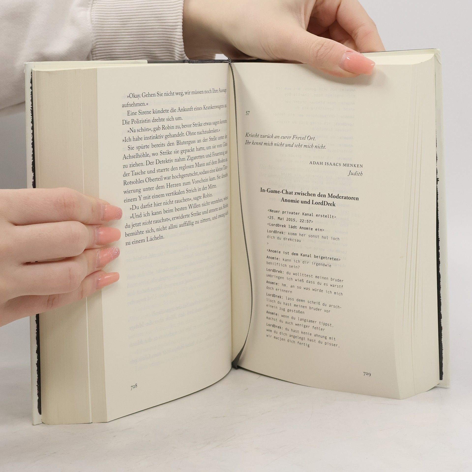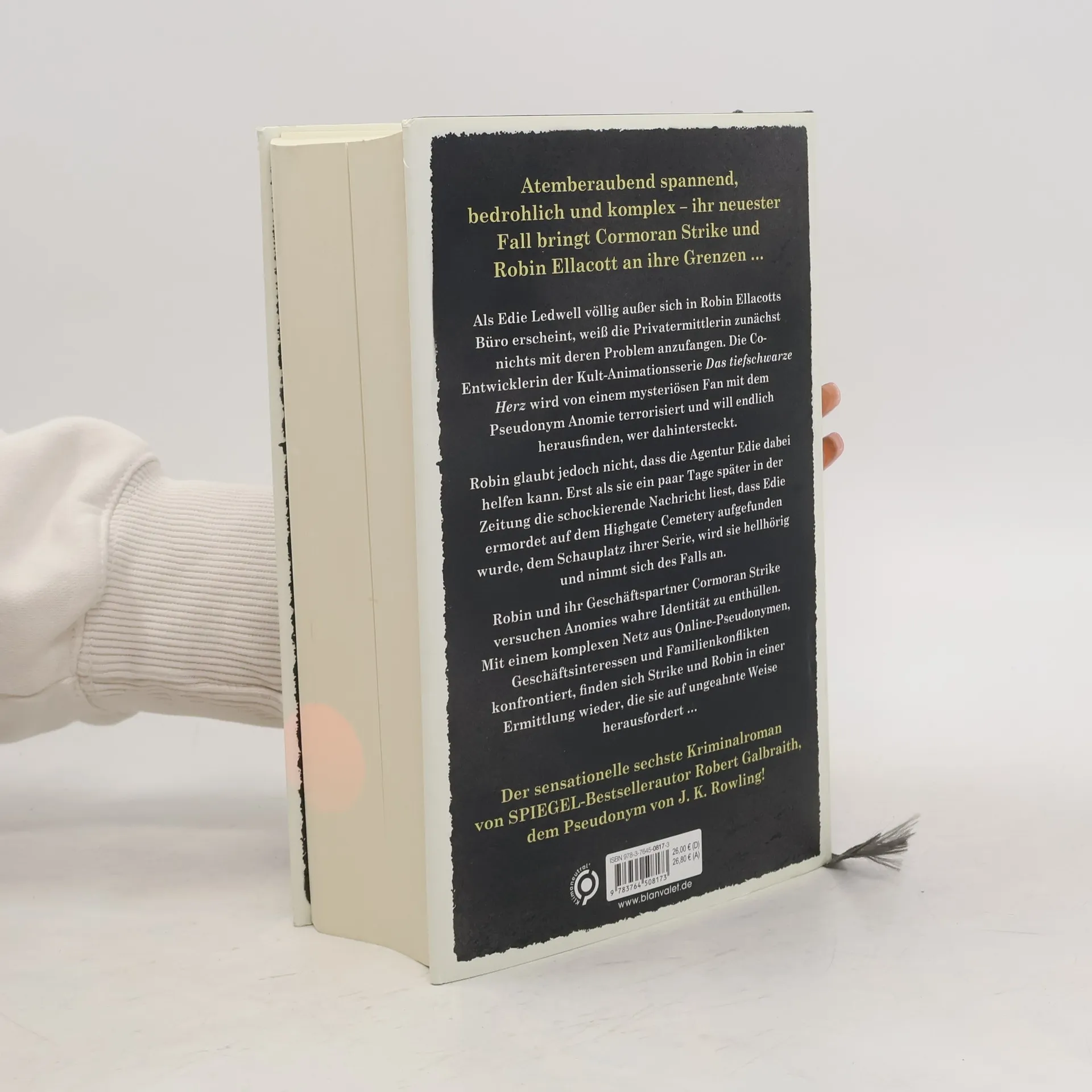 Als Edie Ledwell, verwirrt und völlig außer sich, in Robin Ellacotts Büro erscheint und mit ihr sprechen möchte, weiß die Privatermittlerin zunächst nichts mit deren Problem anzufangen. Die Co-Entwicklerin der Kult-Animationsserie Das tiefschwarze Herz wird von einem mysteriösen Fan mit dem Pseudonym Anomie terrorisiert. Edie ist verzweifelt und will endlich herausfinden, wer dahintersteckt. Robin glaubt nicht, dass die Detektei Edie dabei helfen kann und schickt sie weg. Erst als sie ein paar Tage später in der Zeitung die schockierende Nachricht liest, dass Edie ermordet auf dem Highgate Cemetery aufgefunden wurde, dem Schauplatz von Das tiefschwarze Herz , wird sie hellhörig und nimmt sich des Falls an. Robin und ihr Geschäftspartner Cormoran Strike versuchen Anomies wahre Identität zu enthüllen. Mit einem komplexen Netz aus Online-Pseudonymen, Geschäftsinteressen und Familienkonflikten konfrontiert, finden sich Strike und Robin in einer Ermittlung wieder, die sie auf ungeahnte Weise herausfordert und einer unvermuteten Bedrohung aussetzt … »Mit Cormoran Strike und Robin Ellacott hat Galbraith/Rowling ein ungemein schillerndes und vielschichtiges Ermittlerduo kreiert. Die Dialoge der beiden sind pointiert, ohne bemüht witzig zu sein, die Charaktere stimmig entwickelt.« Hamburger Abendblatt Außerdem aus der Cormoran-Strike-Reihe lieferbar: Der Ruf des Kuckucks Der Seidenspinner Die Ernte des Bösen Weißer Tod Böses Blut