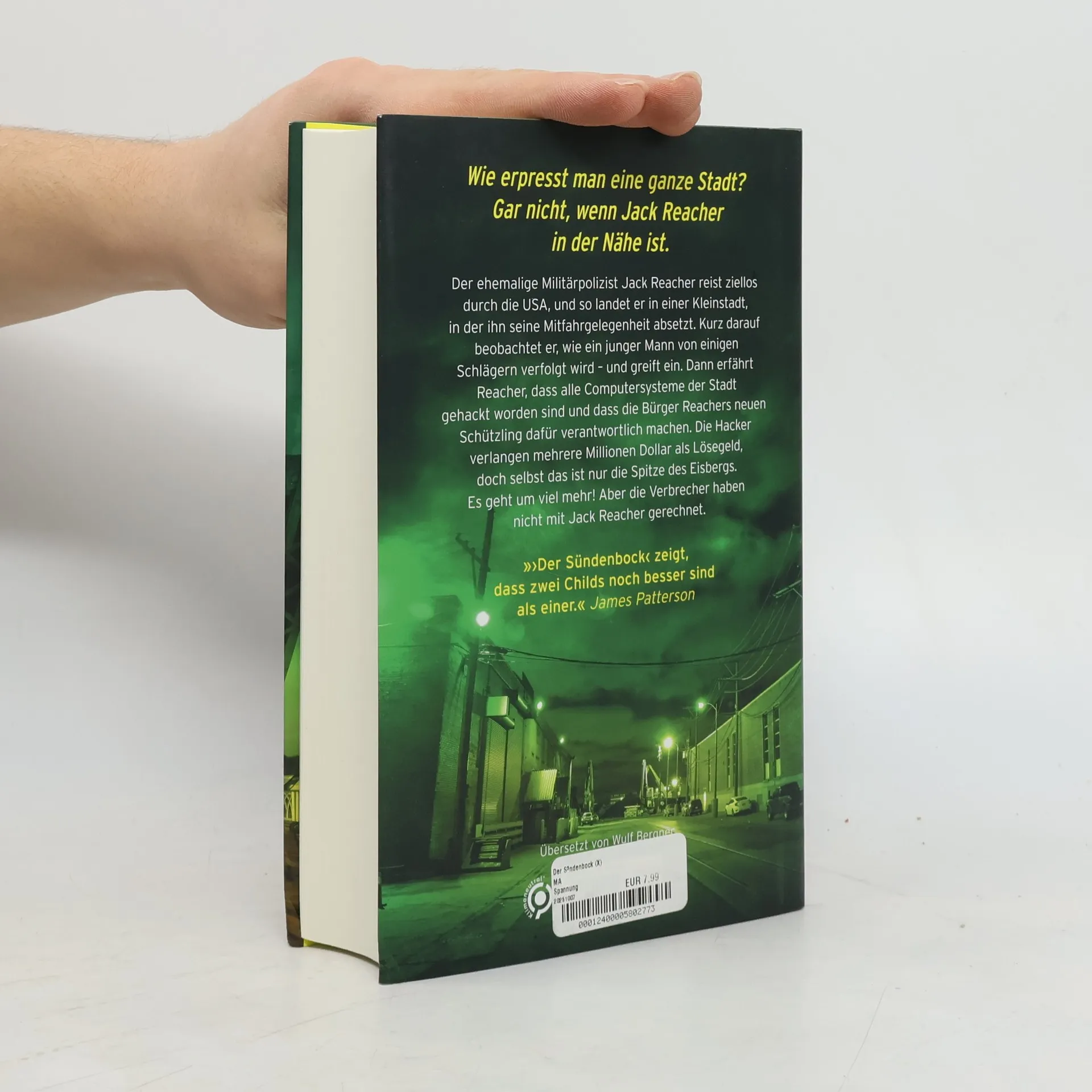 Eine Stadt wird erpresst, doch Jack Reacher ist nicht zu schlagen! »›Der Sündenbock‹ zeigt, dass zwei Childs noch besser sind als einer.« James Patterson Der ehemalige Militärpolizist Jack Reacher reist ziellos durch die USA, und so landet er in einer Kleinstadt, in der ihn seine Mitfahrgelegenheit absetzt. Kurz darauf beobachtet er, wie ein junger Mann von einigen Schlägern verfolgt wird – und greift ein. Dann erfährt Reacher, dass alle Computersysteme der Stadt gehackt worden sind und dass die Bürger Reachers neuen Schützling dafür verantwortlich machen. Die Hacker verlangen mehrere Millionen Dollar als Lösegeld, doch selbst das ist nur die Spitze des Eisbergs. Es geht um viel mehr! Aber die Verbrecher haben nicht mit Jack Reacher gerechnet. Dieser »New-York-Times«-Platz-1-Bestseller ist der 25. Fall der SPIEGEL-Bestsellerserie um Jack Reacher. Verpassen Sie nicht die anderen eigenständig lesbaren Jack-Reacher-Romane wie zum Beispiel »Der Bluthund« und »Die Hyänen. Kennen Sie auch schon den Story-Band »Der Einzelgänger«? Unverzichtbar für alle, die noch mehr über Jack Reacher lesen wollen!