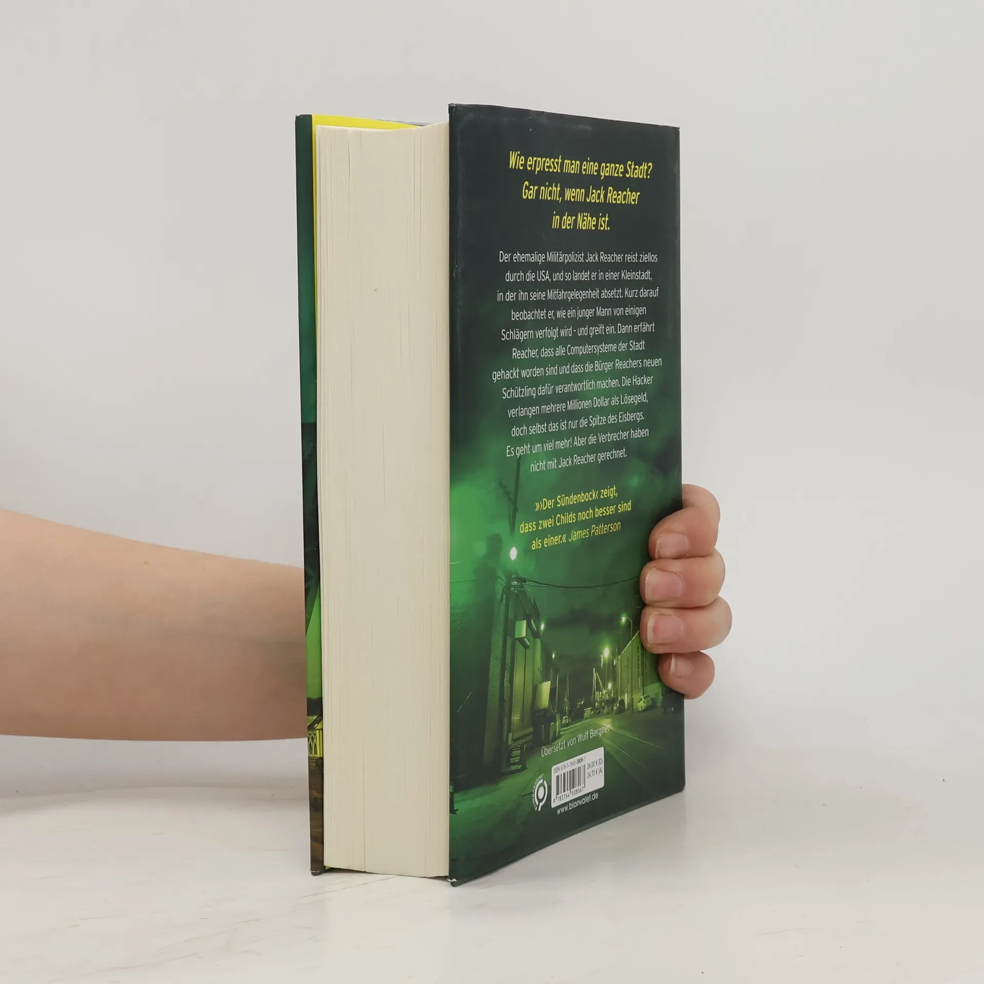 Eine Stadt wird erpresst, doch Jack Reacher ist nicht zu schlagen! »›Der Sündenbock‹ zeigt, dass zwei Childs noch besser sind als einer.« James Patterson Der ehemalige Militärpolizist Jack Reacher reist ziellos durch die USA, und so landet er in einer Kleinstadt, in der ihn seine Mitfahrgelegenheit absetzt. Kurz darauf beobachtet er, wie ein junger Mann von einigen Schlägern verfolgt wird – und greift ein. Dann erfährt Reacher, dass alle Computersysteme der Stadt gehackt worden sind und dass die Bürger Reachers neuen Schützling dafür verantwortlich machen. Die Hacker verlangen mehrere Millionen Dollar als Lösegeld, doch selbst das ist nur die Spitze des Eisbergs. Es geht um viel mehr! Aber die Verbrecher haben nicht mit Jack Reacher gerechnet. Dieser »New-York-Times«-Platz-1-Bestseller ist der 25. Fall der SPIEGEL-Bestsellerserie um Jack Reacher. Verpassen Sie nicht die anderen eigenständig lesbaren Jack-Reacher-Romane wie zum Beispiel »Der Bluthund« und »Die Hyänen. Kennen Sie auch schon den Story-Band »Der Einzelgänger«? Unverzichtbar für alle, die noch mehr über Jack Reacher lesen wollen!