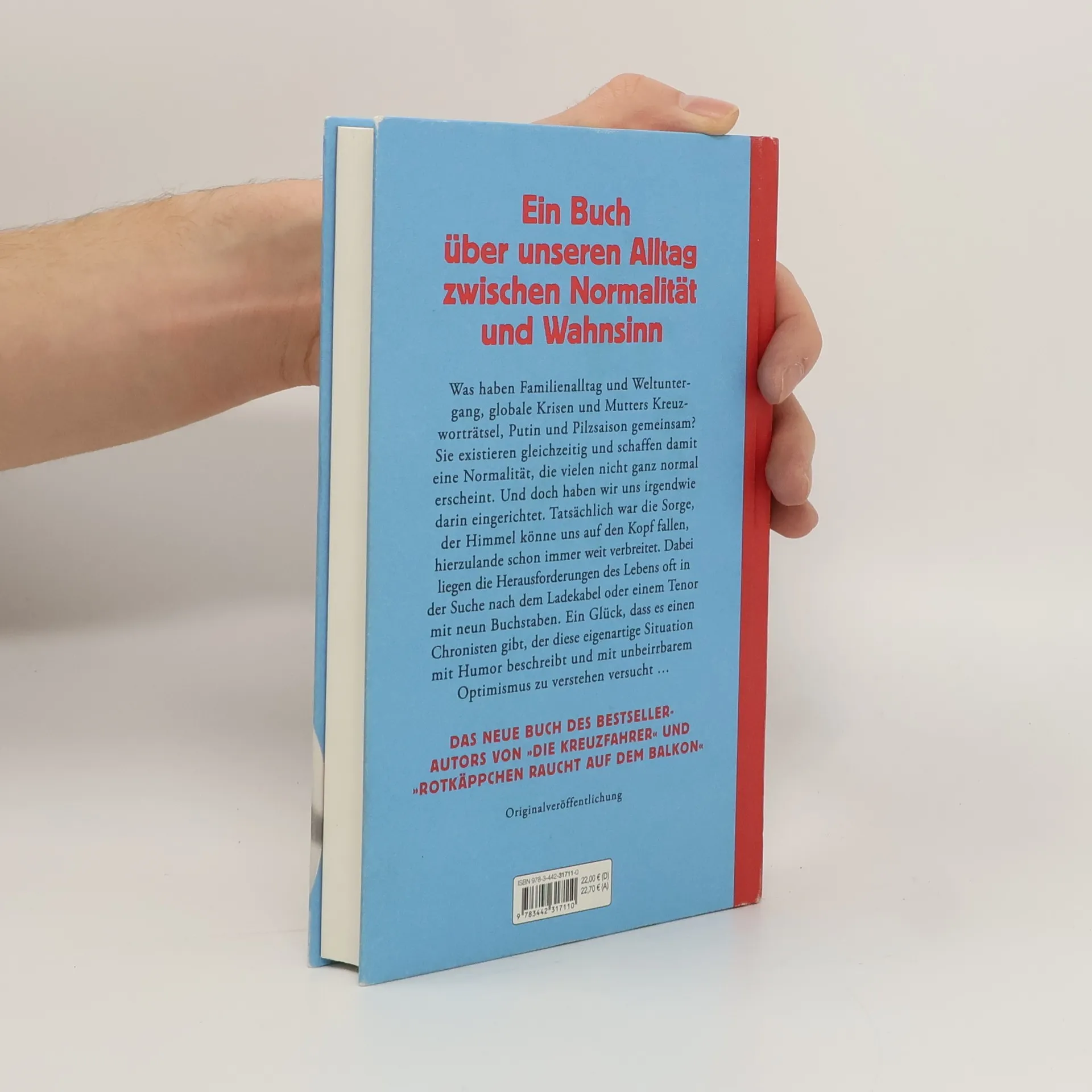 Was haben Familienalltag und Weltuntergang, globale Krisen und Mutters Kreuzworträtsel, Putin und Pilzsaison gemeinsam? Sie existieren gleichzeitig und schaffen damit eine Normalität, die vielen nicht ganz normal erscheint. Und doch haben wir uns irgendwie darin eingerichtet. Tatsächlich war die Sorge, der Himmel könne uns auf den Kopf fallen, hierzulande schon immer weit verbreitet. Dabei liegen die Herausforderungen des Lebens oft in der Suche nach dem Ladekabel oder einem Tenor mit neun Buchstaben. Ein Glück, dass es einen Chronisten gibt, der diese eigenartige Situation mit Humor beschreibt und mit unbeirrbarem Optimismus zu verstehen versucht ...