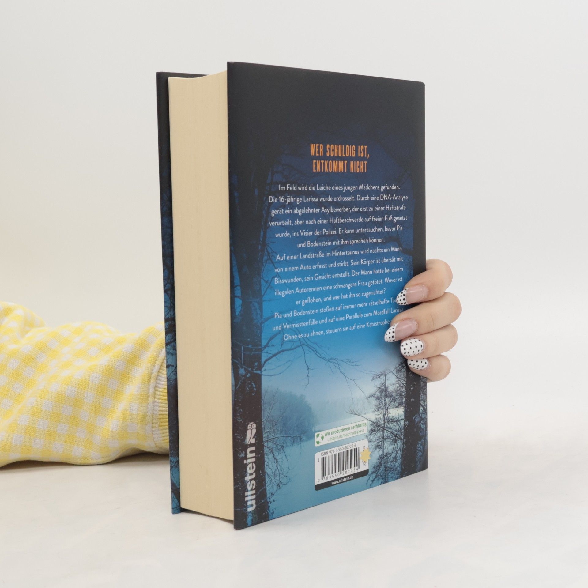 Wer schuldig ist, entkommt nicht Im Feld wird die Leiche eines jungen Mädchens gefunden. Die 16-Jährige Larissa wurde erdrosselt. Durch eine DNA-Analyse gerät ein abgelehnter afghanischer Asylbewerber, der erst zu einer Haftstrafe verurteilt, aber nach einer Haftbeschwerde auf freien Fuß gesetzt wurde, ins Visier der Polizei. Er kann untertauchen, bevor Pia und Bodenstein mit dem Mann sprechen können. Auf einer Landstraße im Hintertaunus wird nachts ein Mann von einem Auto erfasst und getötet. Sein Körper ist übersät mit Bisswunden, sein Gesicht entstellt. Der Mann hatte bei einem illegalen Autorennen eine schwangere Frau getötet. Wovor ist er geflohen und wer hat ihn so zugerichtet? Pia und Bodenstein stoßen auf immer mehr rätselhafte Todes- und Vermisstenfälle und auf eine Parallele zum Mordfall Larissa. Ohne es zu ahnen, steuern sie auf eine Katastrophe zu.