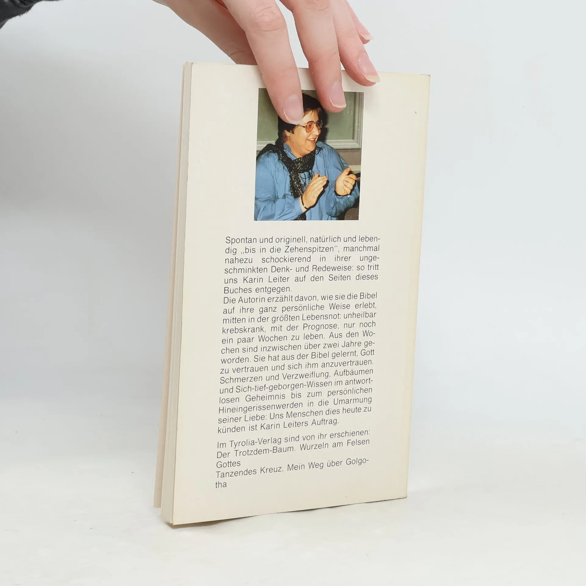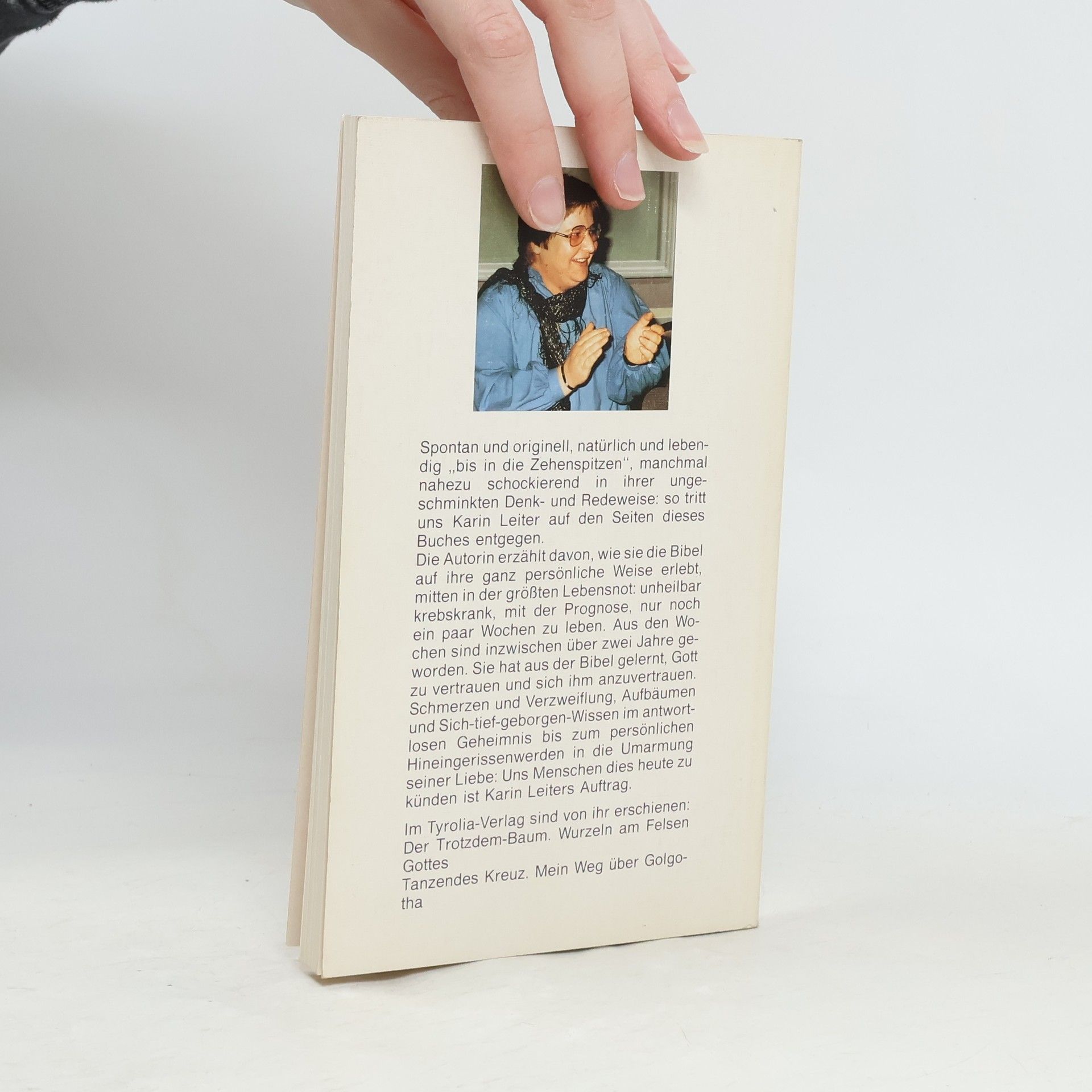 Die Autorin erzählt davon, wie sie die Bibel auf ihre ganz persönliche Weise erlebt, mitten in der größten Lebensnot: unheilbar krebskrank, mit der Prognose, nur noch ein paar Wochen zu leben. Aus den Wochen sind inzwischen über zwei Jahre geworden. Sie hat aus der Bibel gelernt, Gott zu vertrauen und sich ihm anzuvertrauen.