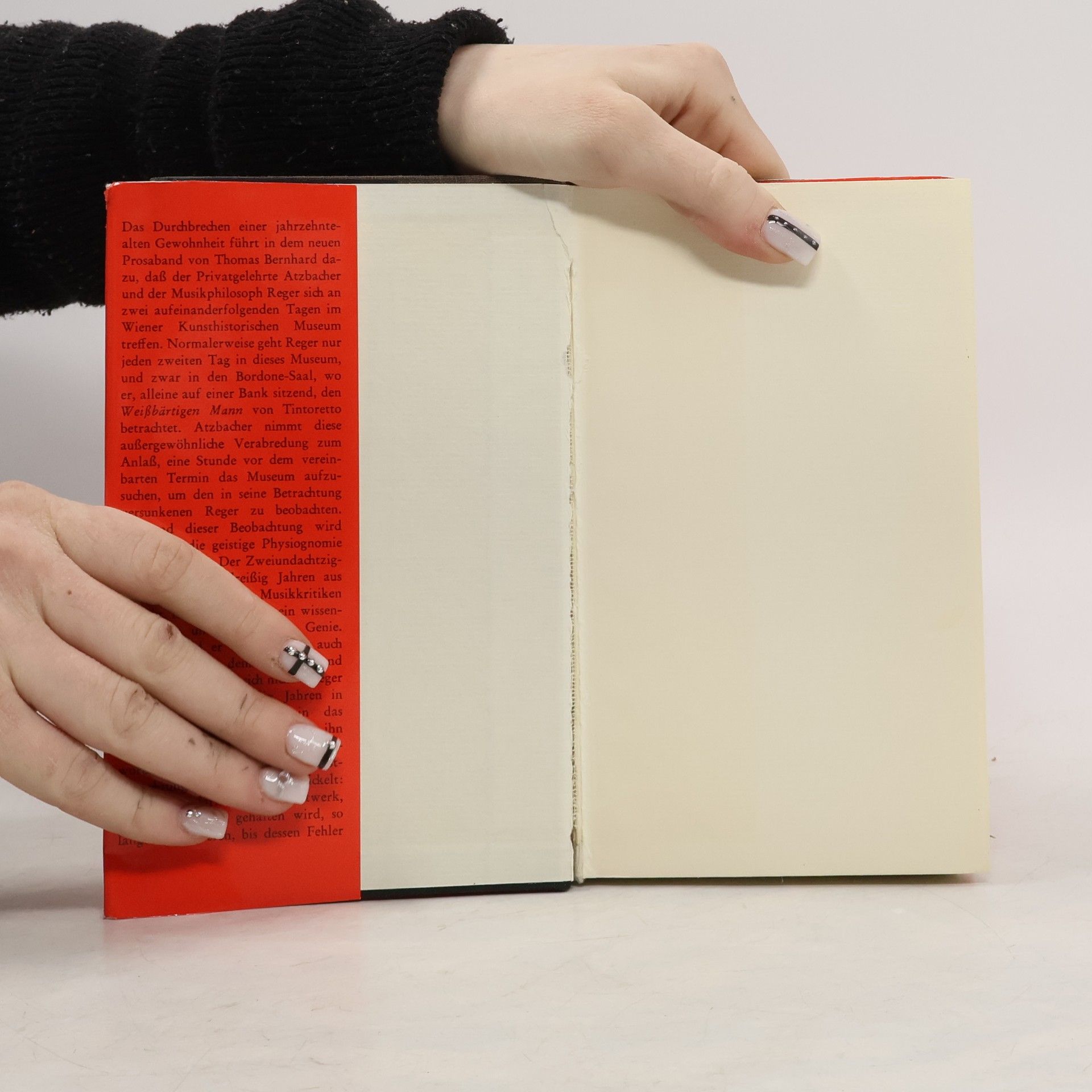 Das Durchbrechen einer jahrzehntealten Gewohnheit führt in dem 1985 zuerst erschienenen Prosaband mit dem Untertitel »Komödie« von Thomas Bernhard dazu, daß der Privatgelehrte Atzbacher und der Musikphilosoph Reger sich an zwei aufeinanderfolgenden Tagen im Wiener Kunsthistorischen Museum treffen. Atzbacher nimmt diese außergewöhnliche Verabredung zum Anlaß, den in seine Betrachtung versunkenen Reger zu beobachten. Der Zweiundachtzigjährige, der seit dreißig Jahren aus Wien für die Times Musikkritiken schreibt, hat im Kunsthistorischcn Museum seine Kunstbetrachtung zur Perfektion entwickelt: Sie besteht darin, jedes Kunstwerk, das für vollendet gehalten wird, so lange zu studieren, bis dessen Fehler aufgedeckt sind. Alle Alten Meister und Großen Geister sind unvollkommen. Daß Kunst, Musik, Philosophie und Literatur jedoch nicht das »Höchste, Allerhöchste« sind, wird Reger bewußt, als seine Frau stirbt, mit der er mehr als drei Jahrzehnte verheiratet war.