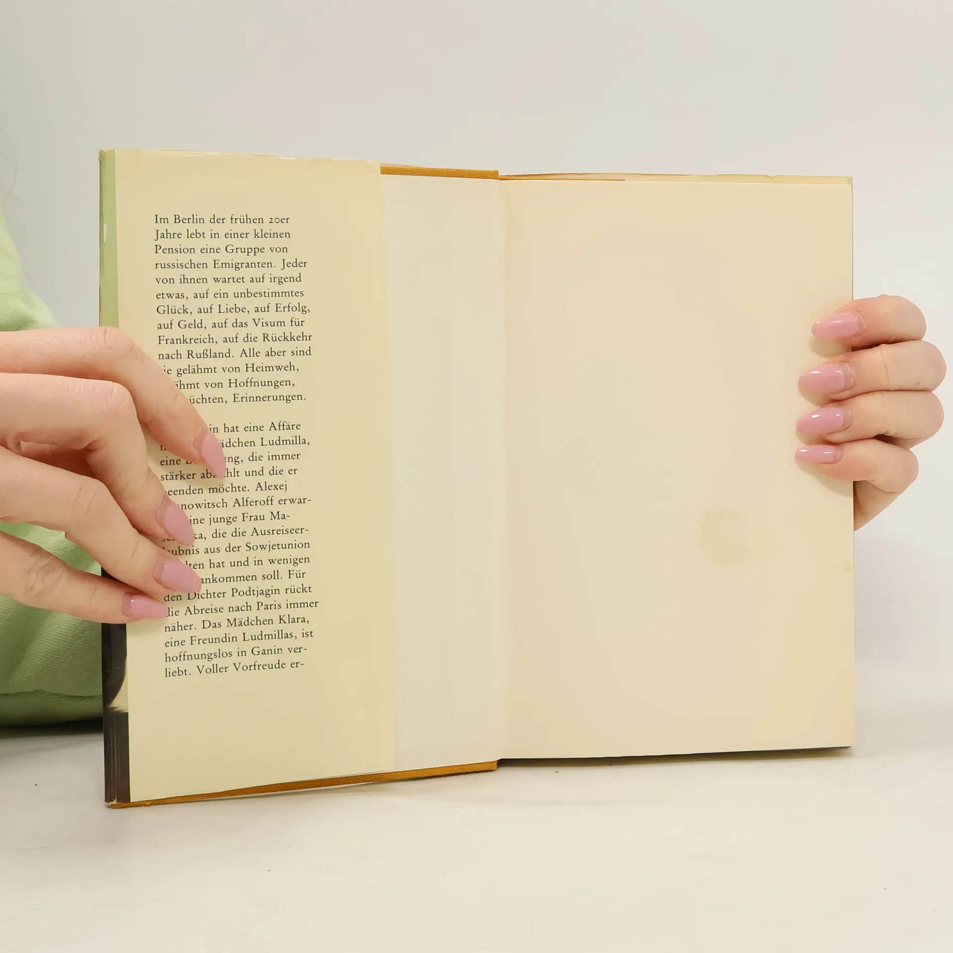 Berlin in den zwanziger Jahren: In einer kleinen Pension wohnt eine Gruppe russischer Emigranten. Einer von ihnen, Lew Ganin, durchlebt in der Erinnerung noch einmal eine verlorene, leidenschaftlich zurückersehnte Liebe. "Nabokov ist einer der gößten Erotiker der Literatur unseres Jahrhunderts, weil er uns alle Schattierungen und Grade der Zuneigung eines Menschen zu einem anderen sehen und spüren lässt, und dies mit ganz unauffälligen Mitteln." (Frankfurter Allgemeine Zeitung)