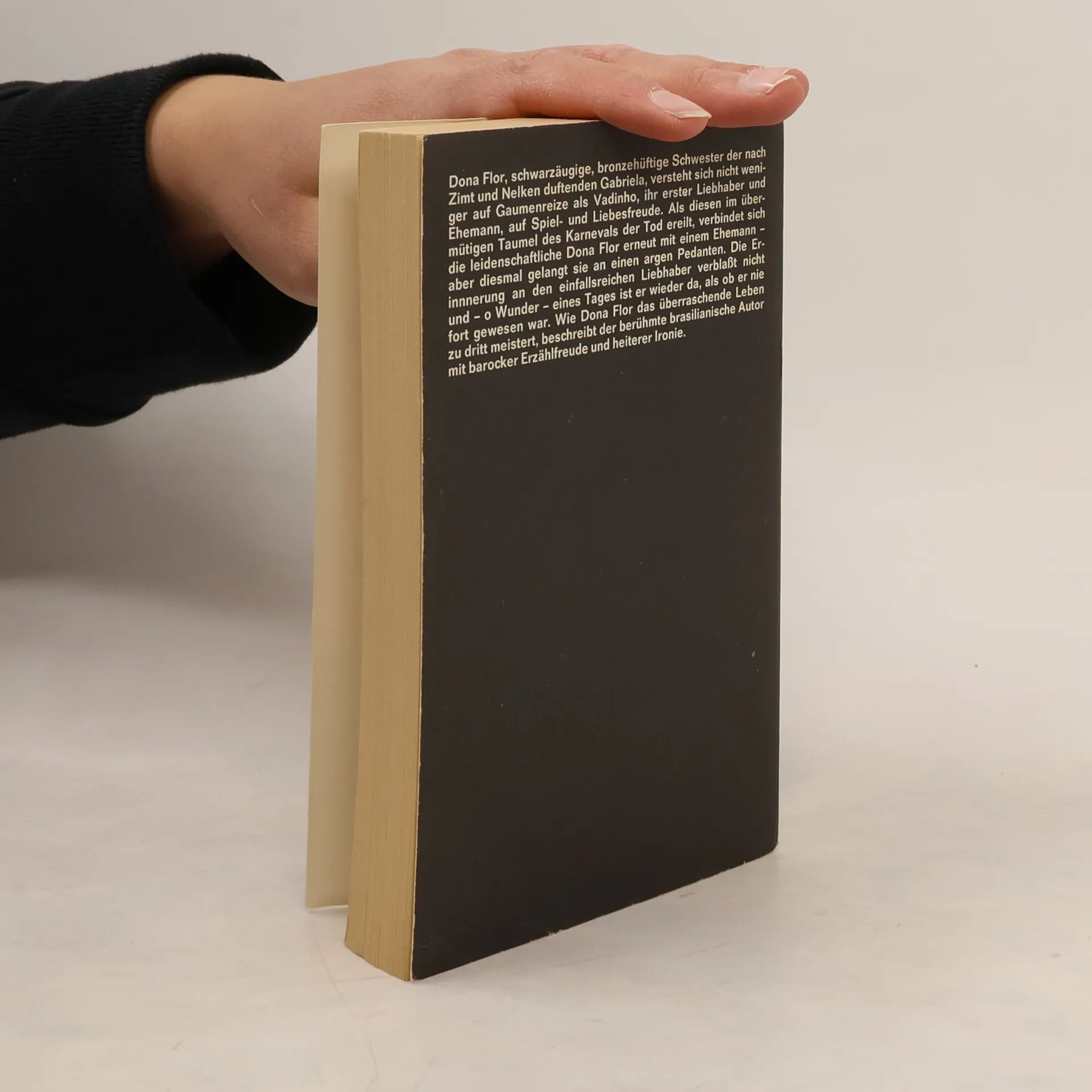 Der Verdacht liegt nahe, daß die schöne Dona Flor einen Liebhaber hat, wenn man sie neben ihrem unscheinbaren neuen Gatten sieht. Seit ihr der verstorbene Ehemann als Geist erscheint, hat sie plötzlich zwei Männer. Jorge Amado erzählt ironisch und voller Phantasie eine erotische Menage a trois, in der die Gesellschaft an der Nase herumgeführt wird.