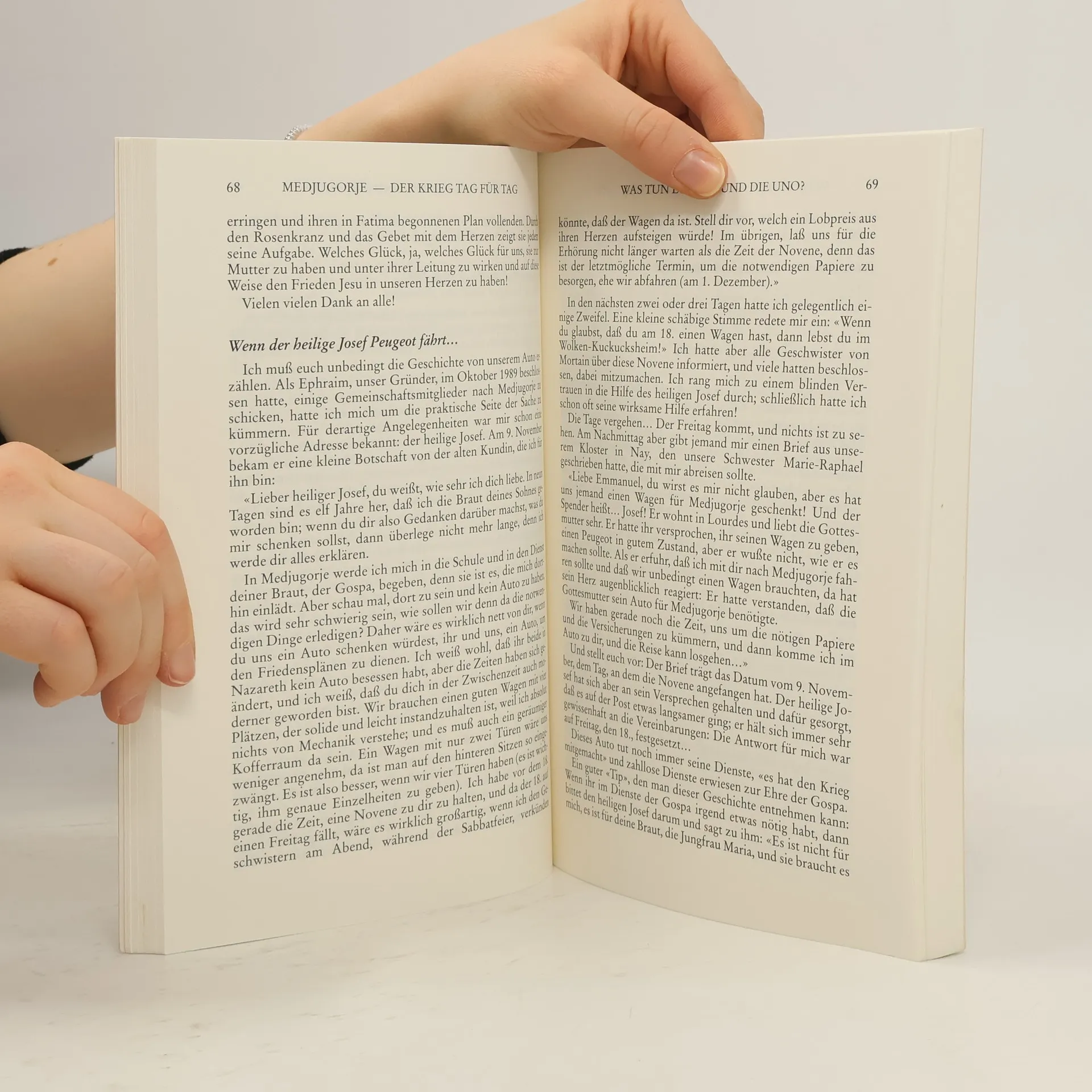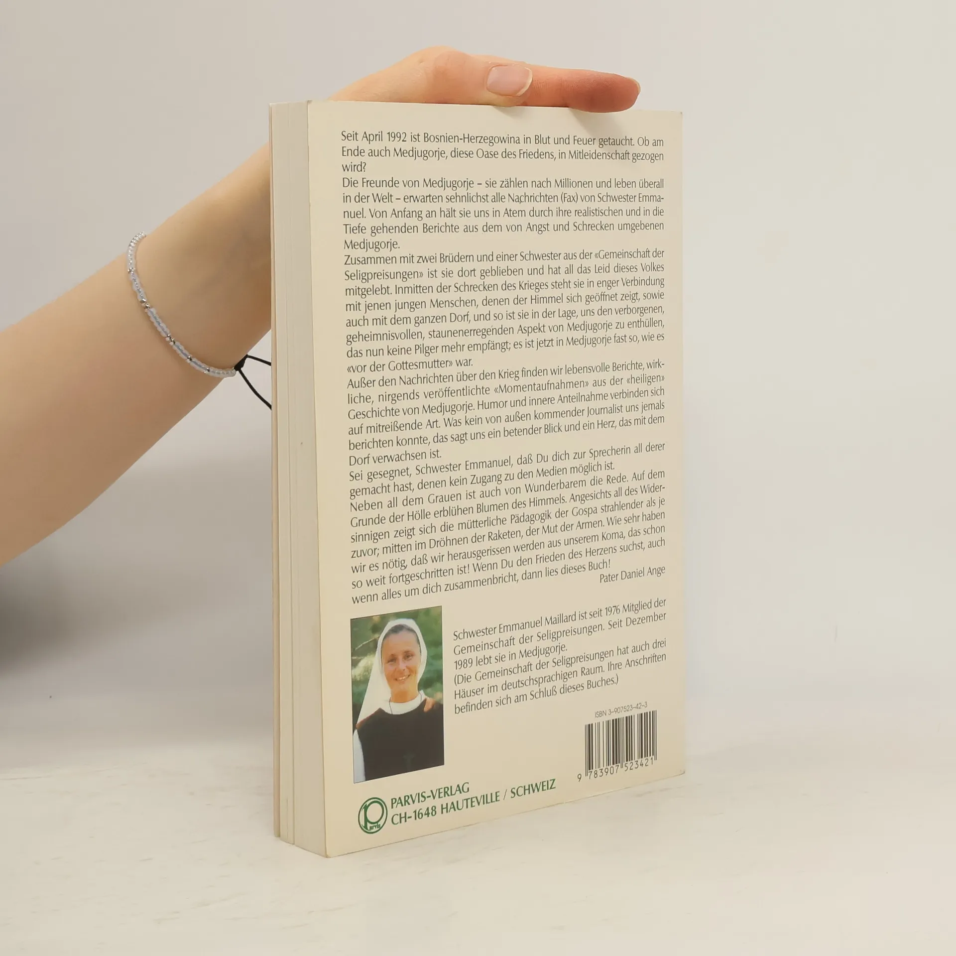 Seit April 1992 ist Bosnien-Herzegowina von Krieg und Leid geprägt. Medjugorje, einst eine Oase des Friedens, steht ebenfalls auf der Kippe. Die Freunde von Medjugorje, Millionen weltweit, warten gespannt auf Nachrichten von Schwester Emmanuel, die uns mit ihren eindringlichen Berichten aus dem von Angst geprägten Ort fesselt. Zusammen mit zwei Brüdern und einer Schwester aus der «Gemeinschaft der Seligpreisungen» lebt sie das Leid der Menschen vor Ort mit. Sie bleibt in engem Kontakt zu den jungen Menschen, die in dieser Zeit der Not den Himmel erfahren, und zum gesamten Dorf. Dadurch offenbart sie uns die verborgenen, mysteriösen Aspekte von Medjugorje, das mittlerweile keine Pilger mehr empfängt und an die Zeit «vor der Gottesmutter» erinnert. Neben den Berichten über den Krieg finden sich lebendige, unveröffentlichte «Momentaufnahmen» aus der Geschichte von Medjugorje. Humor und innere Anteilnahme verbinden sich auf berührende Weise. Was uns kein Journalist vermitteln kann, offenbart ein betender Blick und ein Herz, das mit dem Dorf verwachsen ist. Schwester Emmanuel wird zur Stimme derjenigen, die keinen Zugang zu den Medien haben. Trotz des Grauens wird auch von Wundern berichtet. Inmitten der Zerstörung blühen die Blumen des Himmels. Wenn du Frieden im Herzen suchst, selbst wenn alles um dich herum zerbricht, dann lies diese Erzählungen!