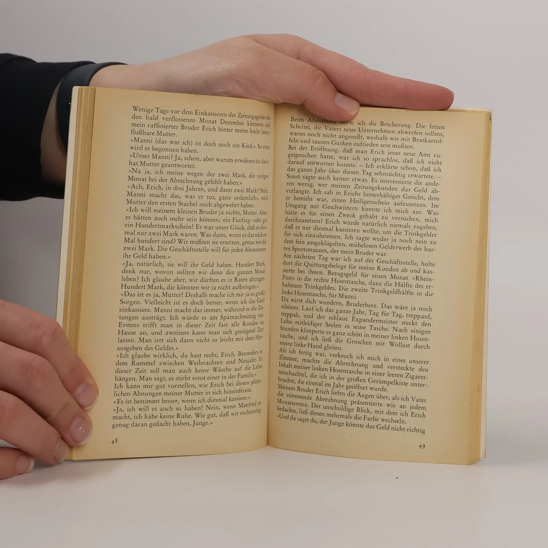 Manfred Peters, eines der acht Kinder aus einer Arbeiterfamilie, beschreibt rückblickend seine Jugend in dem roten, unverputzten Hinterhaus einer Industriestadt am Rhein. Sie fällt in die Zeit der Weltwirtschaftskrise und des Aufstiegs von Hitler. Unter den bestürzendsten Eindrücken wächst Manfred heran und sucht sich seinen Weg.