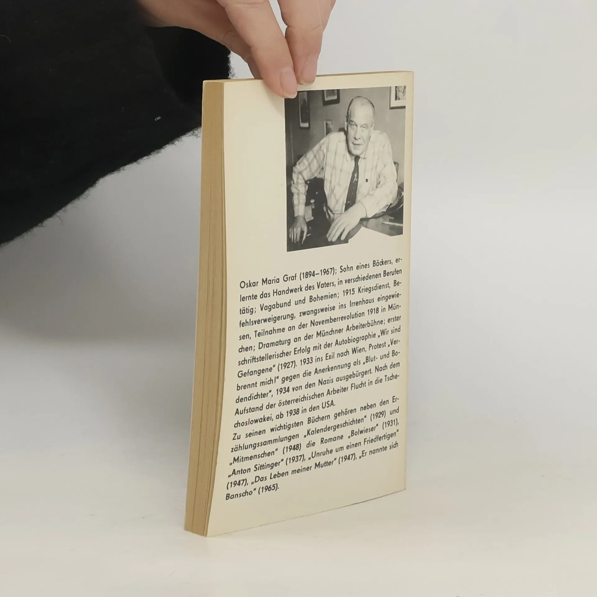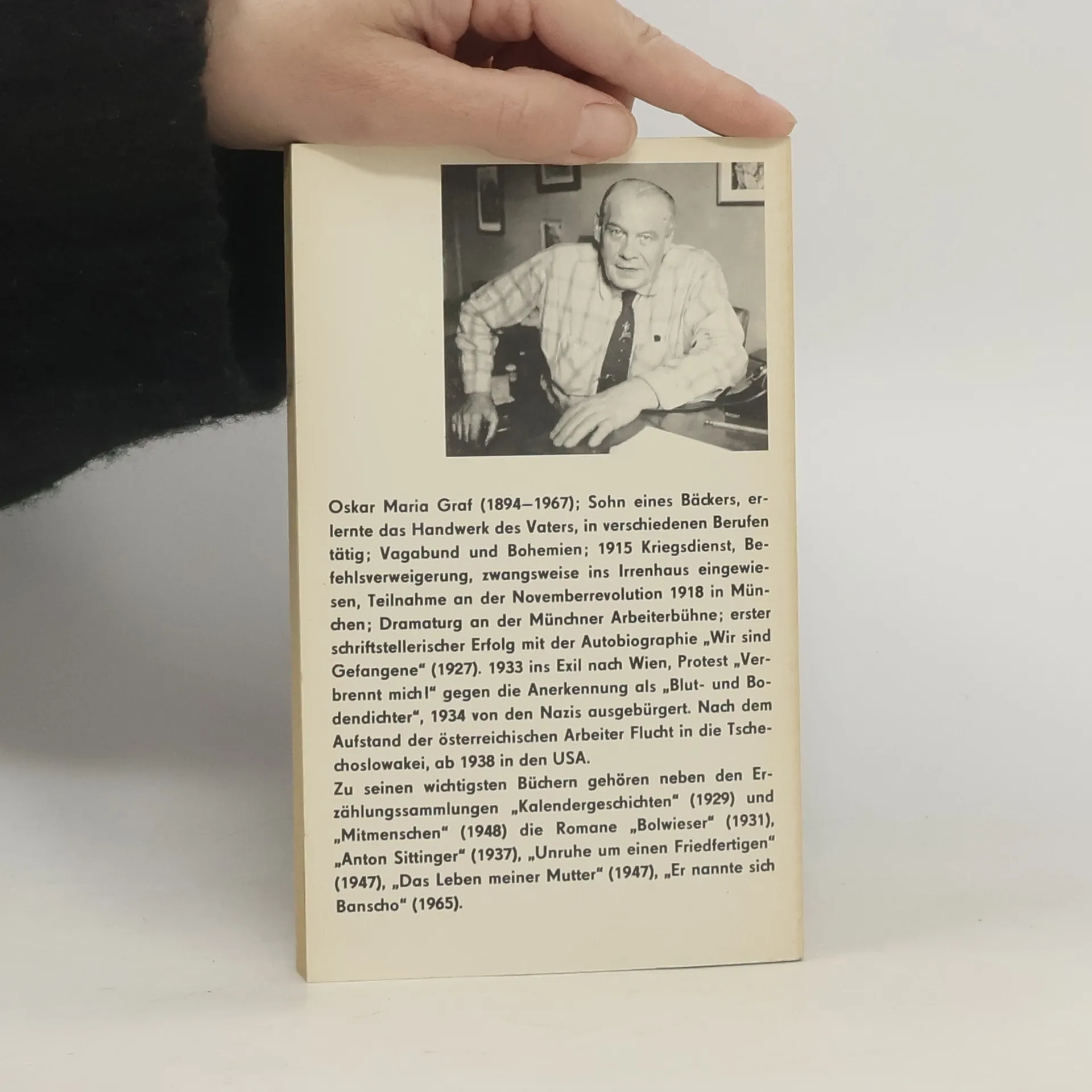 Oskar Maria Graf erlernte das väterliche Bäckerhandwerk, lief von zu Hause fort und übte wandernd vielerlei Befufe aus. Nach dem ersten Weltkrieg kehrte er nach München zurück und nahm an der revolutionären Bewegung teil. Er war Mitarbeiter des Simplicissimus, wo er seine ersten Bauerngeschichten veröffentlichte. Aus ihnen stellte er diese Schwanksammlung, Das bayrische Dekameron (1927) zusammen, die wie seine Kalendergeschichten, (1929) und sein Roman Das Leben meiner Mutter (1940) das bayrische Dorfmilieu in realistischer Sprache ohne jede Schönfärberei wiedergibt. In den Erzählungen des Großen Bauernspiegels (1962) weitet sich das Thema zur Darstellung des bäuerlichen Menschen schlechthin. Oskar Maria Graf lebte von 1938 bis Juni 1967 in New York.