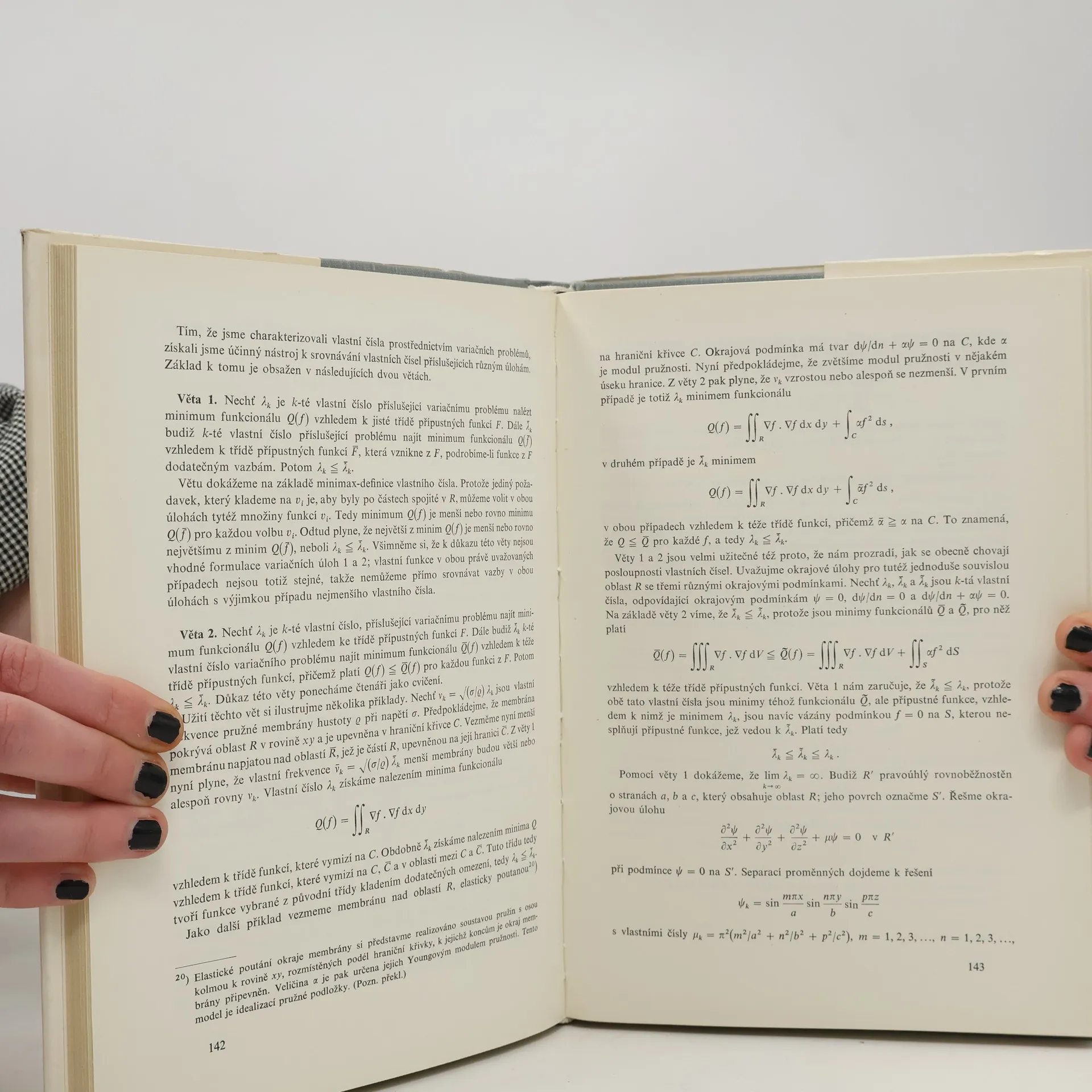 V jednotlivých kapitolách jsou vysvětleny principy lineární algebry, variačního počtu, metody separace proměnných a metody Greenovy funkce při řešení okrajových úloh, principy integrálních rovnic (zejména Hilbertovy Fredholmovy teorie) a integrálních transformací (hlavně Fourierovy a Laplaceovy), a to tak, aby byly vytýčeny vzájemné analogie a spojitosti. Za každým odstavcem jsou uvedena cvičení, za každou kapitolou přehled příslušné literatury, který je v překladu rozšířen. Autor sám tvrdí, že "vyšší algebra je vyložena od začátku, takže čtenáři postačí znát jen elementární středoškolskou algebru".