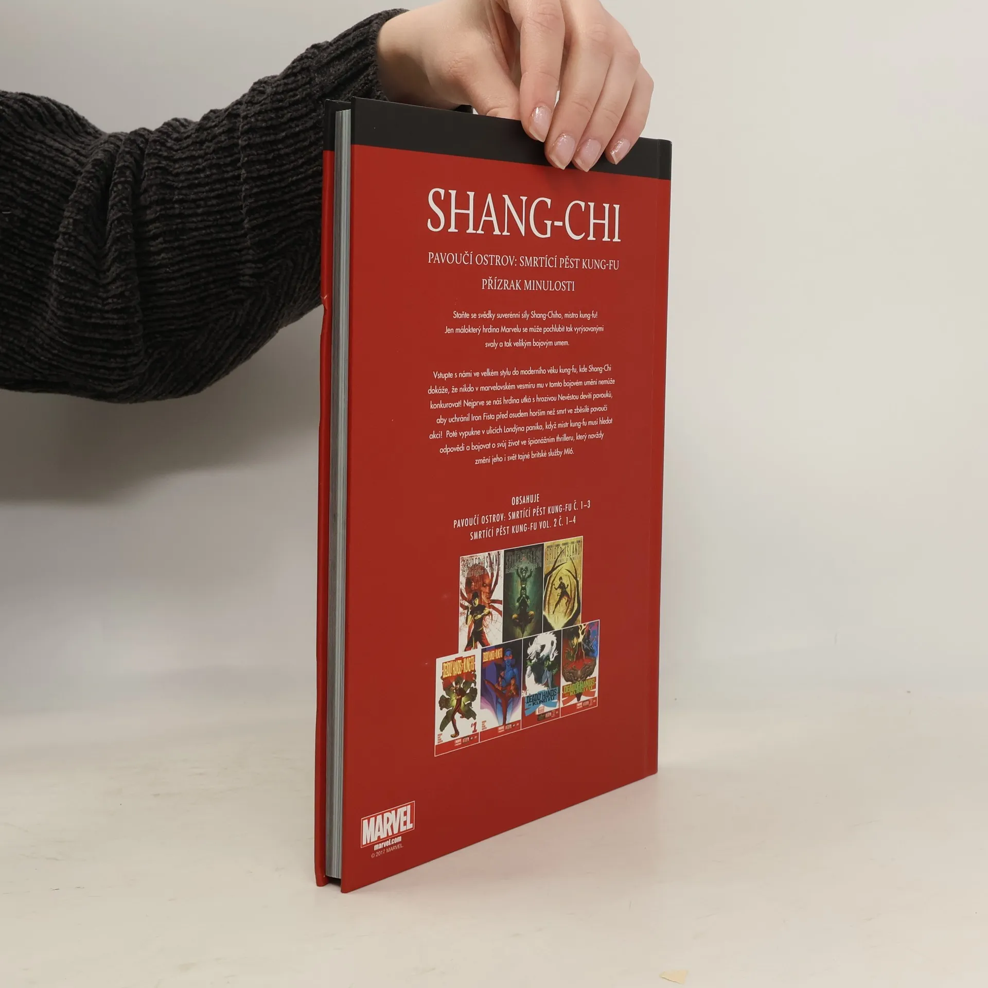 Vstupte s námi ve velkém stylu do moderního věku kung-fu, kde Shang-Chi dokáže, že nikdo v marvelovském vesmíru mu v tomto bojovém umění nemůže konkurovat! Nejprve se náš hrdina utká s hrozivou Nevěstou devíti pavouků, aby uchránil Iron Fista před osudem horším než smrt ve zběsilé pavoučí akci! Poté vypukne v ulicích Londýna panika, když mistr kung-fu musí hledat odpovědi a bojovat i svůj život ve špionážním thrilleru, který navždy změní jeho i svět tajné britské služby MI6. Obsahuje: Pavoučí ostrov: Smrtící pěst kung-fu Deadly Hands of Kung Fu Vol 2 1 Deadly Hands of Kung Fu Vol 2 2 Deadly Hands of Kung Fu Vol 2 3 Přízrak minulosti
