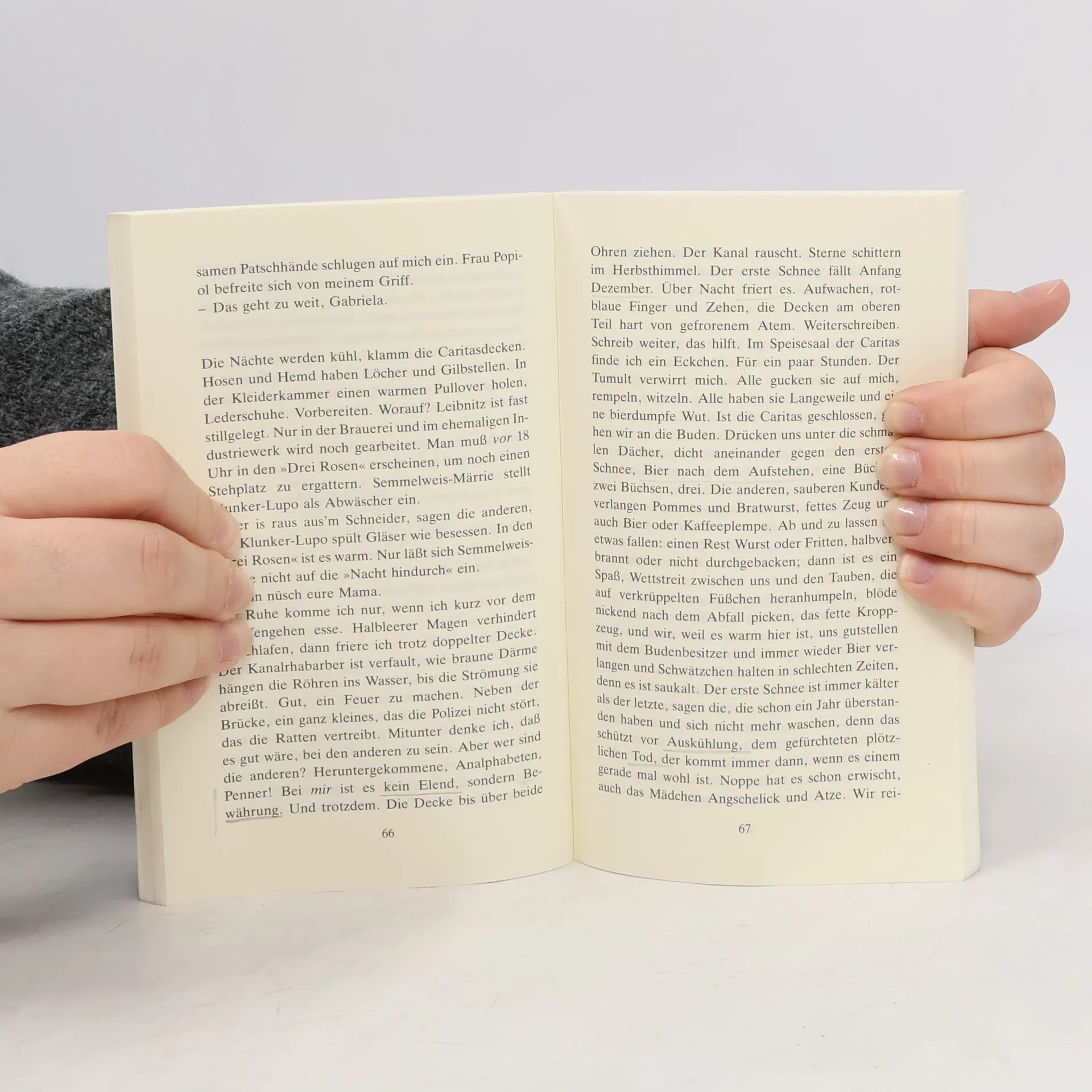 Kerstin Hensel erzählt die Lebensgeschichte der Gabriela von Haßlau aus Leibnitz. Präsentiert das Kind, die Schülerin, den Lehrling, die Obdachlose, die sich Papier zusammensucht, um ihr Leben aufzuschreiben, das wahrhaft verdient, aufgeschrieben zu werden. Auch mit Blick auf den Vater: Obermedizinalrat Ernst von Haßlau, Chef der Chirurgischen Klinik. Auch mit Blick auf die Mutter, die – obwohl eher bieder – eines Tages mit einem Schauspieler durchbrennt. Auch mit Blick auf Katka, Gabrielas Freundin aus verkommenem Milieu; auf die Obdachlosen, die sich winters in der Kneipe wärmen und nachts hinausgekehrt werden. Auch mit Blick auf das Gerechtigkeitsverfahren eines sozialistischen Staates: Gabriela wird vergewaltigt, einer der beiden Wüstlinge schneidet ihr, zur Markierung, auf ihrem Arm ein Kreuz ein. Der Staat aber kann ein derart asoziales Verhalten nicht dulden und zwingt den Chirurgenvater, um das Geschehene ungeschehen zu machen, eine Hauttransplantation vorzunehmen. Ein Lehrstück für alle. Erzählt mit einer Genauigkeit, die der Brutalität nichts schuldig bleibt und die dort abbricht, wo es ihrer nicht mehr bedarf.
