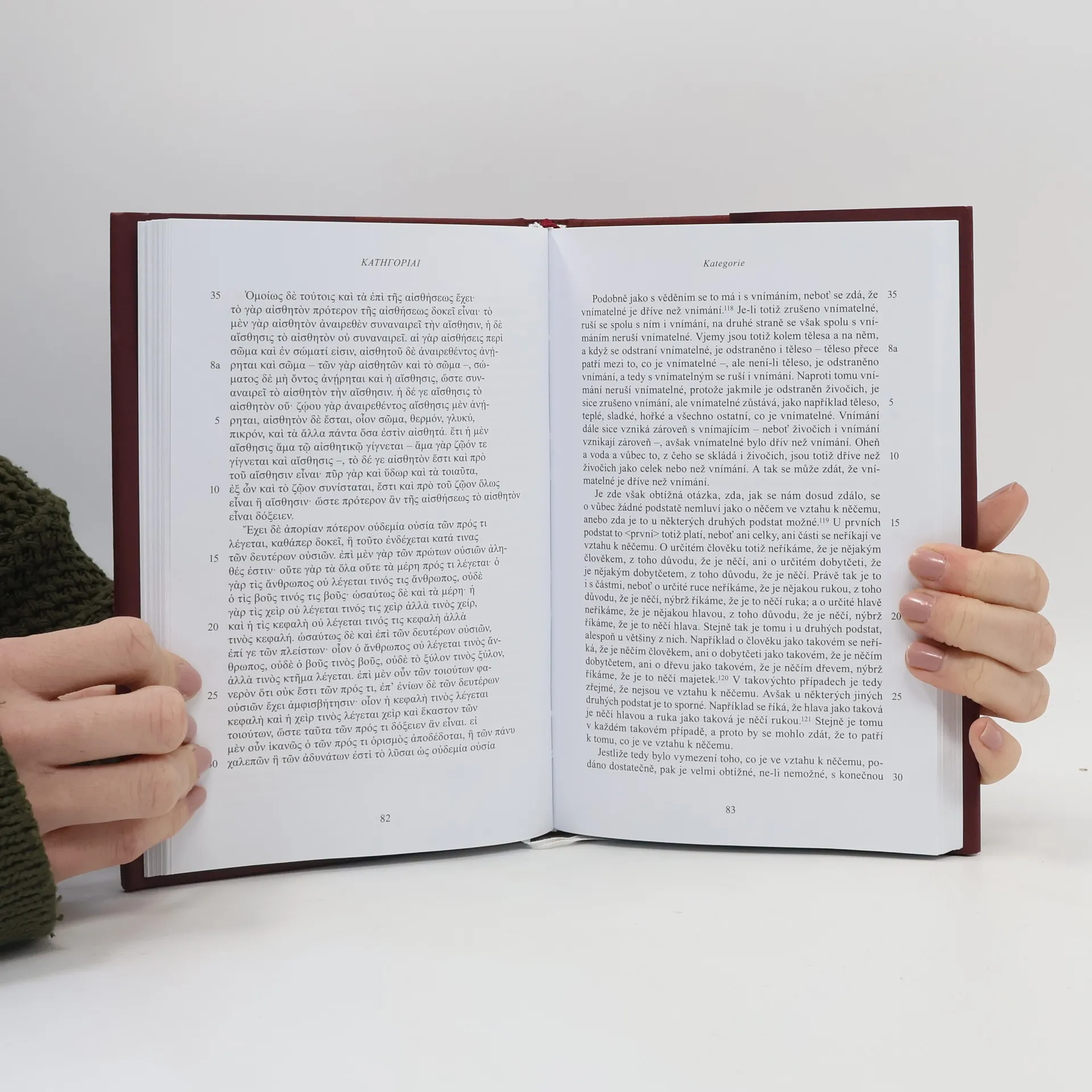 Spis patří přes svůj nevelký rozsah k dílům, jež zásadně ovlivnila vývoj západního myšlení od antiky až po současnost. Je v něm vyloženo aristotelské pojetí vztahu bytí a pojmenování a předložena proslulá tabulka deseti kategorií, které představují základní způsoby, jimiž se vypovídá jsoucí. Nový český překlad J. Hejlka, A. Havlíčka a J. Jinka vychází v zrcadlovém řecko-českém vydání, opatřeném úvodní studií a poznámkami.