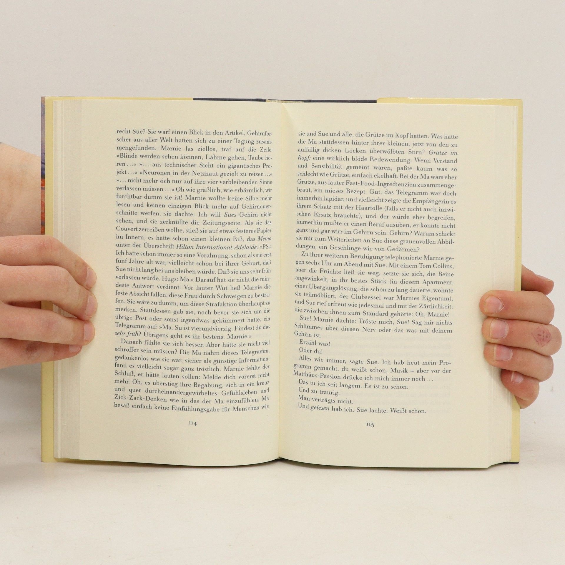 Wie sieht die Wirklichkeit des Glücks und der Liebe aus, und wie wichtig ist es, daß wir diese Wirklichkeit genau erkennen? In den Mittelpunkt ihres Romans stellt Gabriele Wohmann die auf Grund eines Unfalls sehbehinderte Ehefrau Sue. Sue macht die Erfahrung, daß es gar nicht so wünschenswert ist, die Dinge und Menschen allzu genau betrachten zu können, denn, als ihr eines Tages das Sehvermögen wiedergegeben wird, stehen vor allem die Personen, die ihr die liebsten sind, in nicht besonders gutem Licht da.