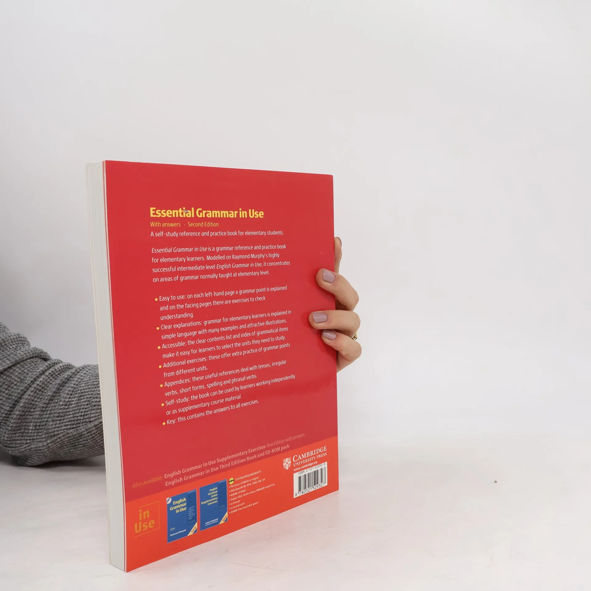 Essential Grammar in Use is available with a promotional bonus extra CD-ROM. The CD-ROM contains: * over 150 interactive grammar questions * instant scoring and feedback * electronic study guides for students to check their level * printable grammar reference pullout panels * introduction to the range of Cambridge Learner's Dictionaries