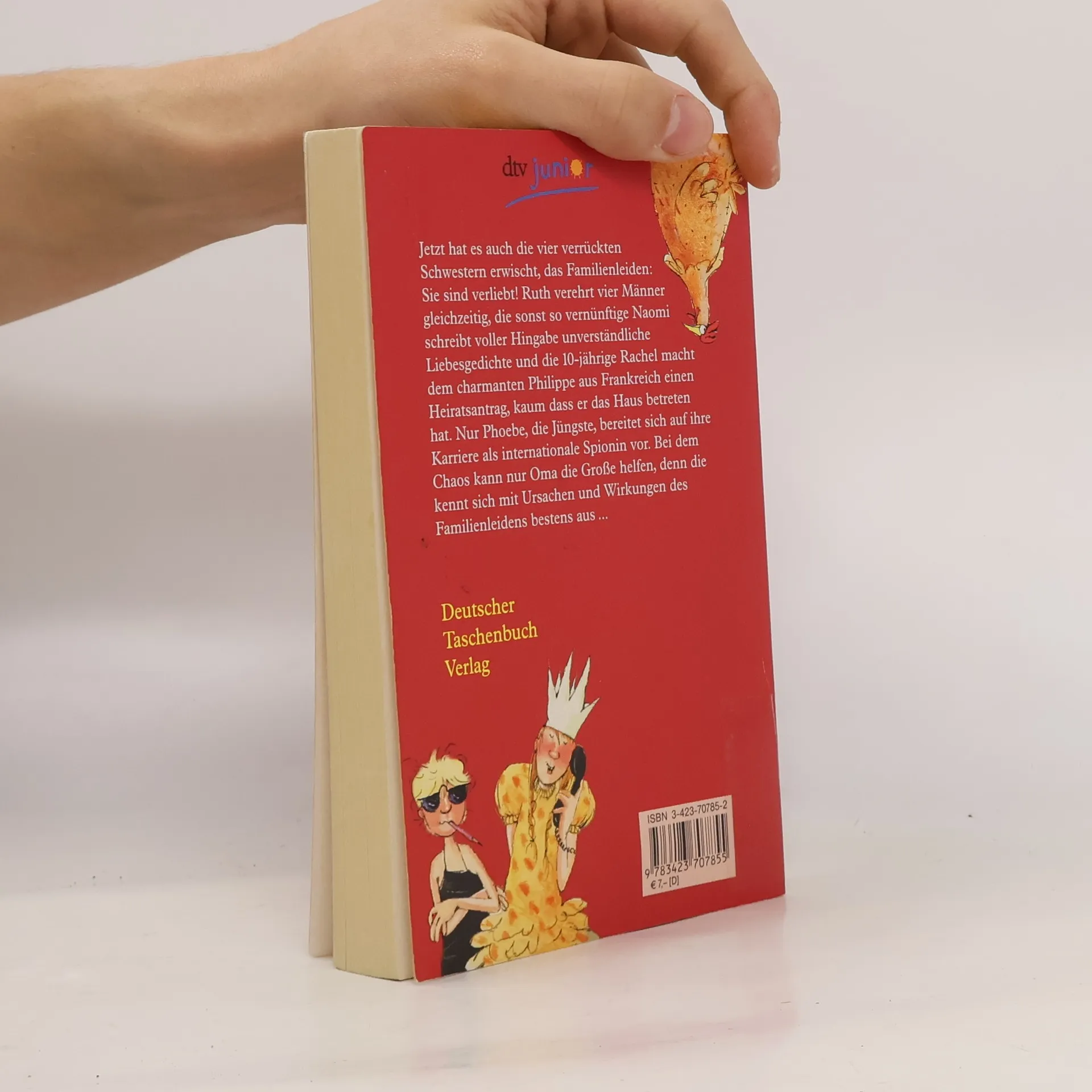 Ruth verehrt vier Männer gleichzeitig, die sonst so vernünftige Naomi schreibt voller Hingabe unverständliche Liebesgedichte und die 10-jährige Rachel macht dem charmanten Philippe aus Frankreich einen Heiratsantrag, kaum dass er das Haus betreten hat. Nur Phoebe, die Jüngste, bereitet sich auf ihre Karriere als internationale Spionin vor. Bei dem Chaos kann nur Oma die Große helfen, denn die kennt sich mit Ursachen und Wirkungen des Familienleidens bestens aus