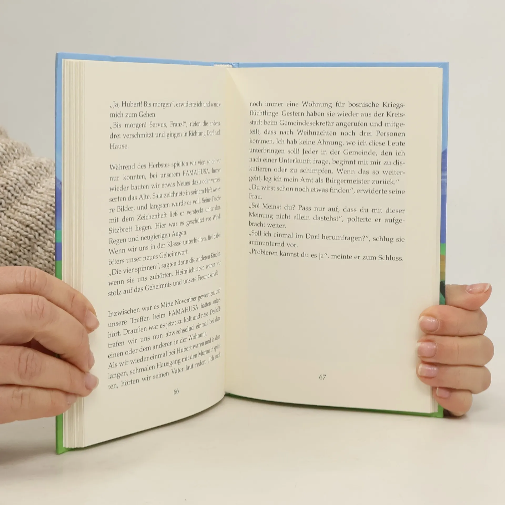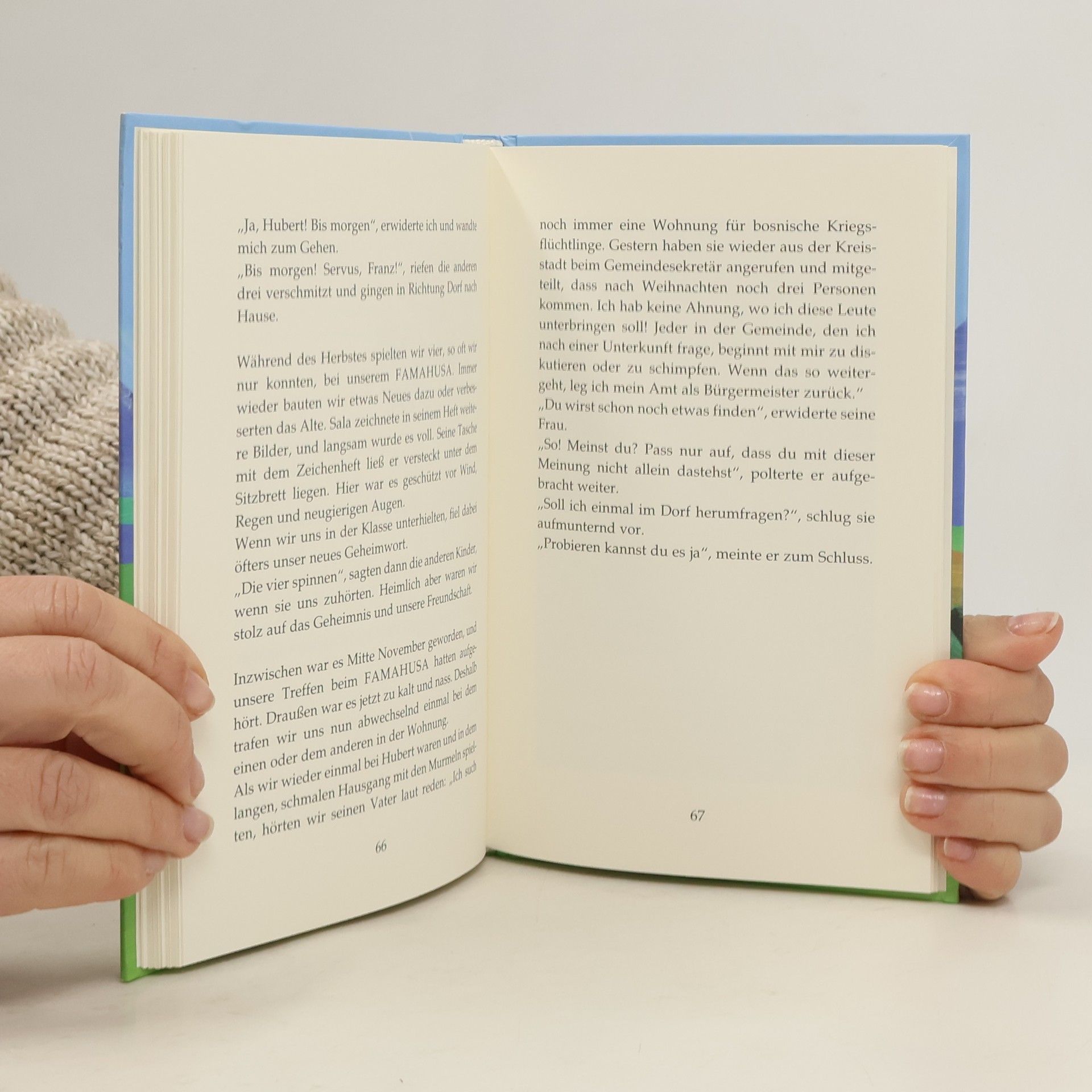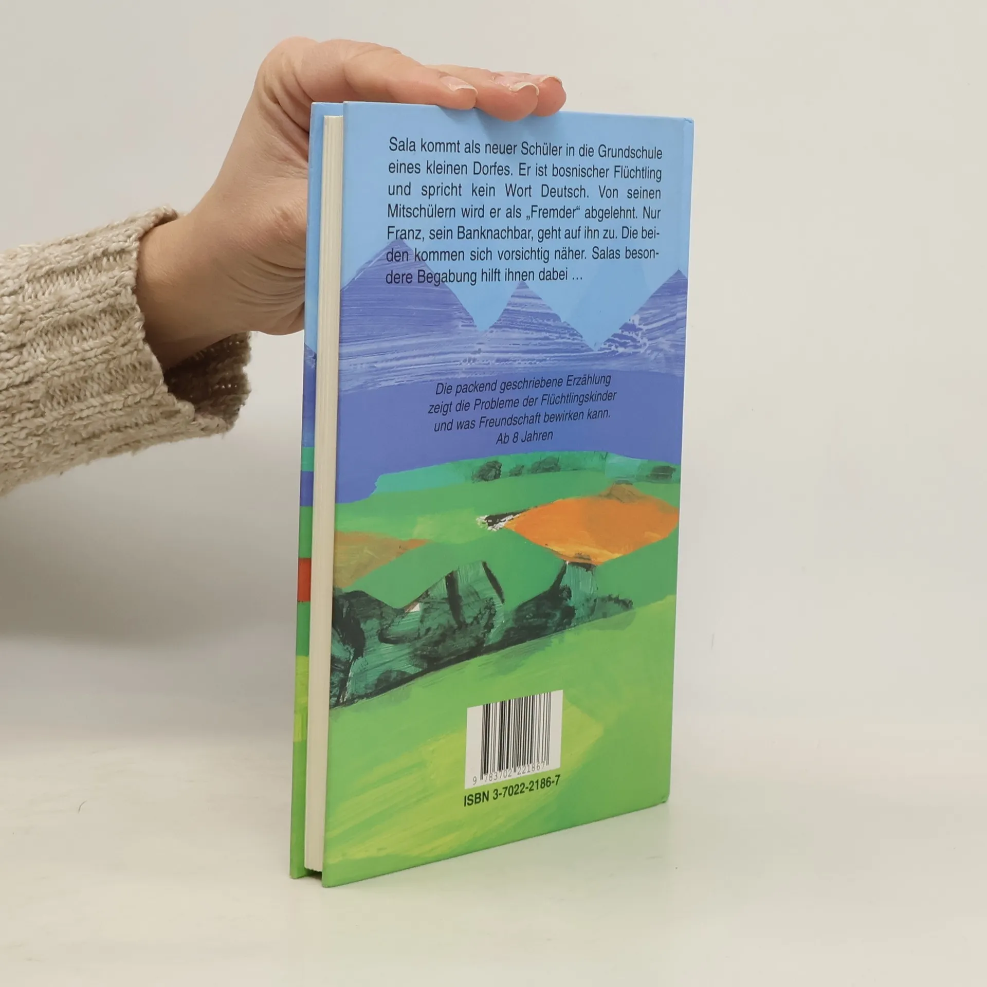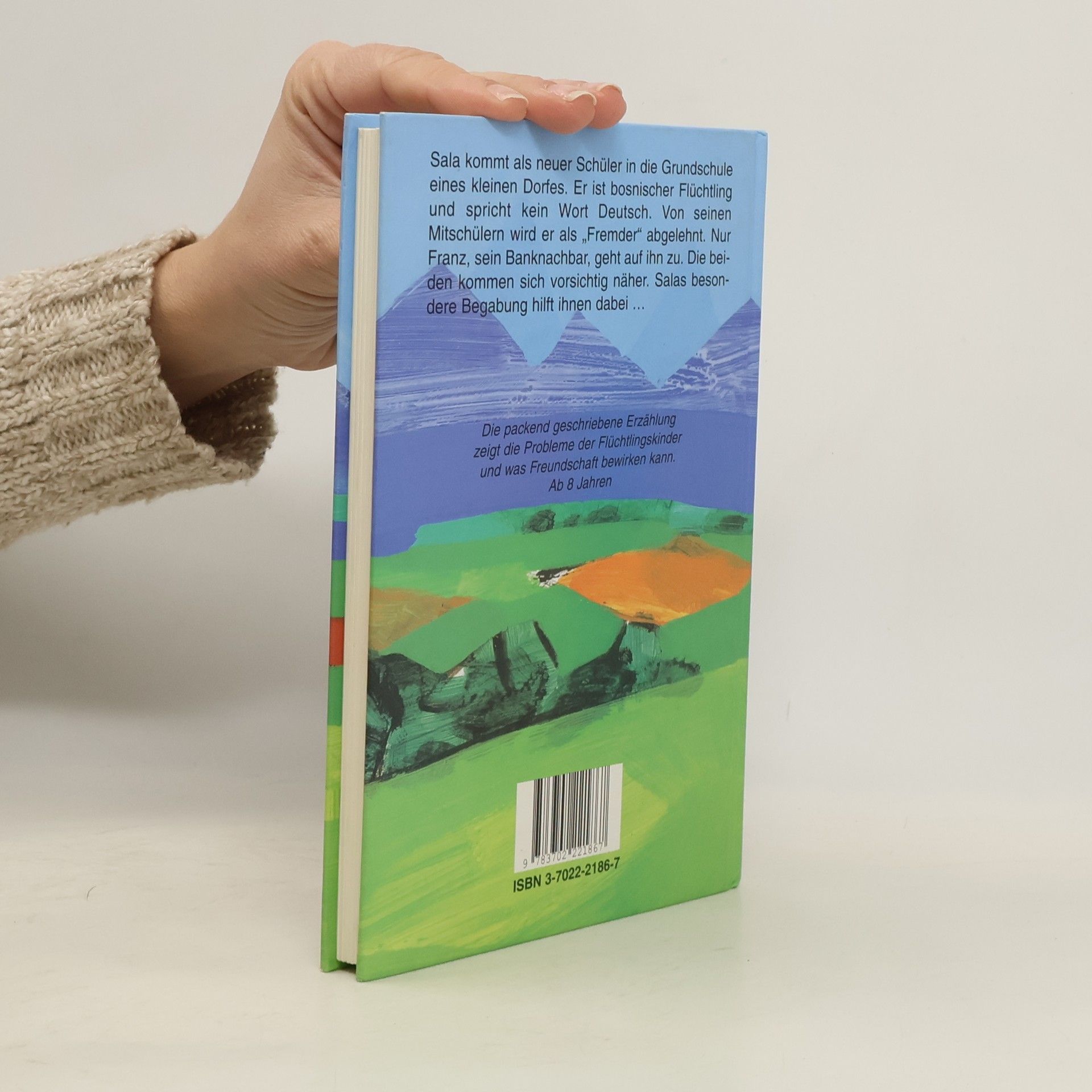 Ein packend geschriebenes Buch zum Thema ”Flüchtlingsintegration”. Der 9-jährige Franz lebt mit seinen beiden Schwestern in einem Dorf auf einem Bauernhof. Eines Tages kommt ”ein Neuer” in die Klasse, der kein Wort deutsch kann. Das bringt die festgefügte Klassengemeinschaft ganz schön durcheinander. Salahudin Dizdarevic, der neue Mitschüler, wird Franz ”zugeteilt”, da neben ihm der Platz frei ist. Beim vorsichtigen Annähern ist den beiden Salas Zeichentalent eine große Hilfe. Die anderen Kinder aber lehnen den Neuen ab – und auch den vorher so beliebten Franz, weil er ihm hilft und sein Freund ist. Der stimmungsvolle Text bezieht den Leser schnell in die Geschehnisse ein. Er erlebt die Konflikte mit. Die klaren Illustrationen der norddeutschen Künstlerin bieten dabei einen hilfreichen Kontrast.