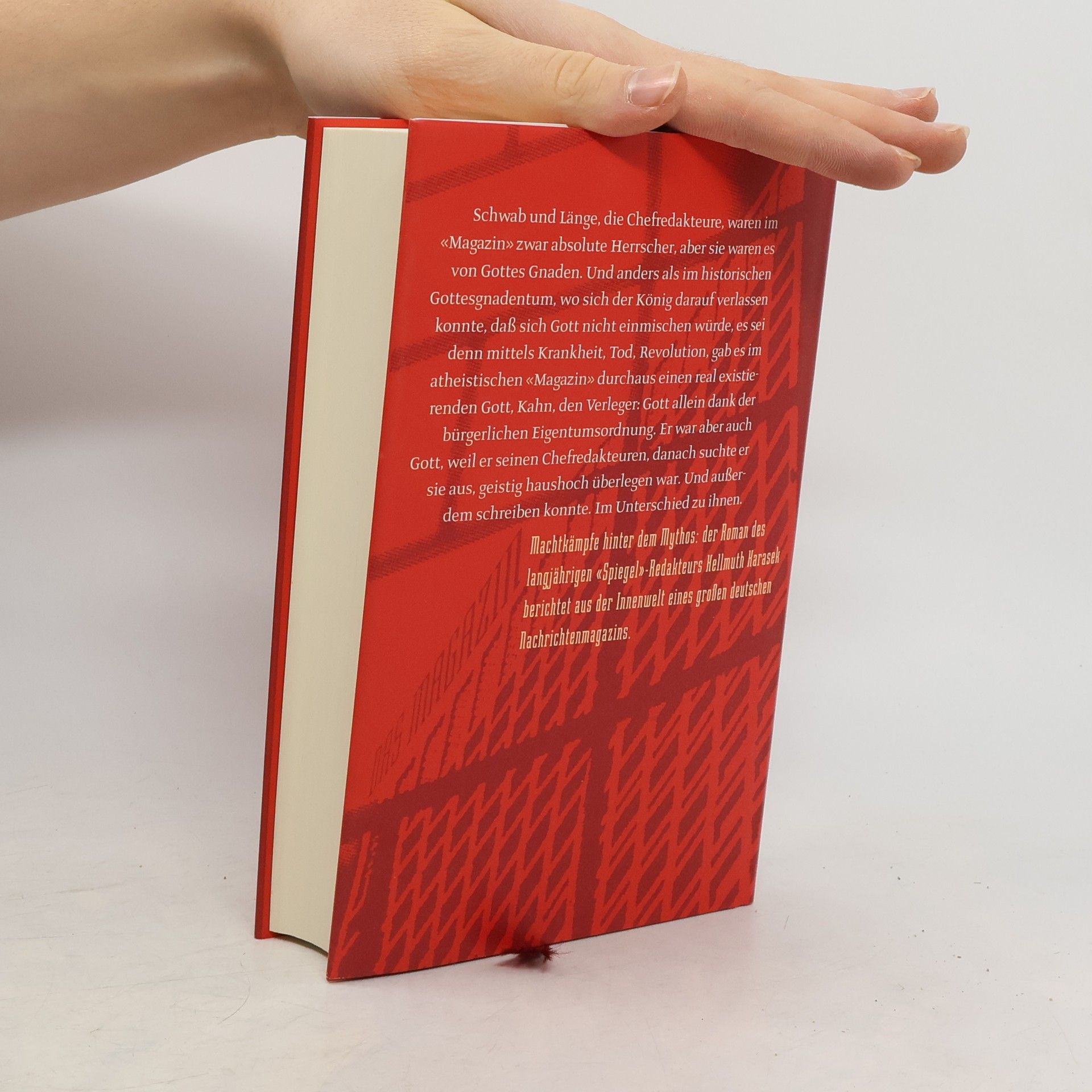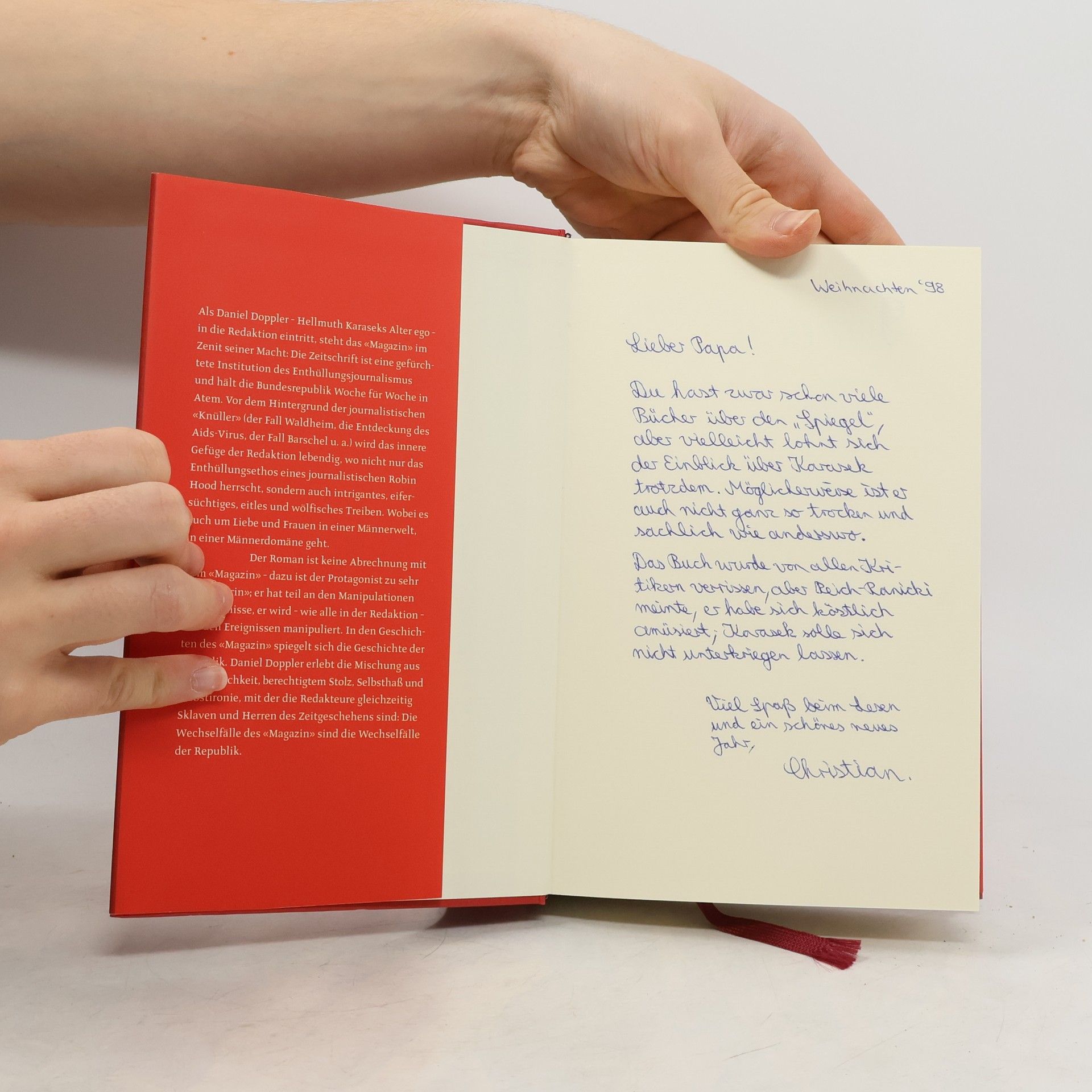Als Daniel Doppler - Hellmuth Karaseks Alter ego - in die Redaktion des "Magazins" eintritt, ist die Zeitschrift eine gefürchtete Institution des Enthüllungsjournalismus und hält die Bundesrepublik Woche für Woche in Atem. An seiner Arbeitsstätte erlebt Doppler "intrigantes, eifersüchtiges, eitles und wölfisches Treiben", wobei es auch um Liebe und Frauen in einer Männerdomäne geht. Karasek legt ein spannendes, aber auch komisches Buch vor; es ist keine Abrechnung mit dem "Magazin", dazu ist der Protagonist zu sehr "mitten drin"; er hat teil an den Manipulationen der Ereignisse und wird - wie seine Kollegen - von den Ereignissen manipuliert.