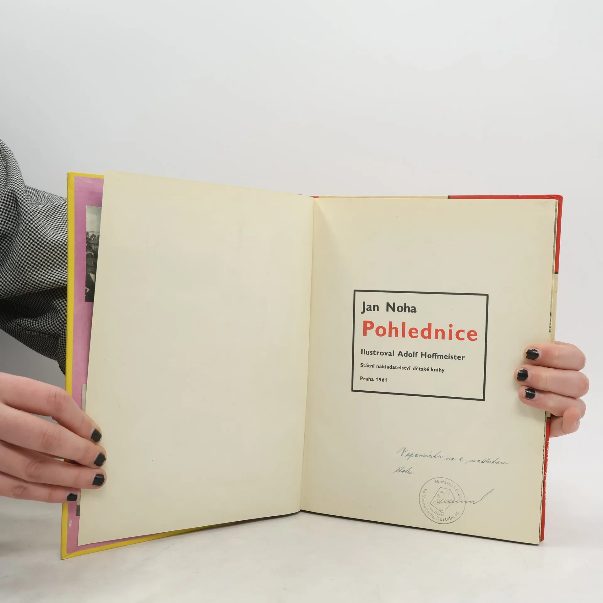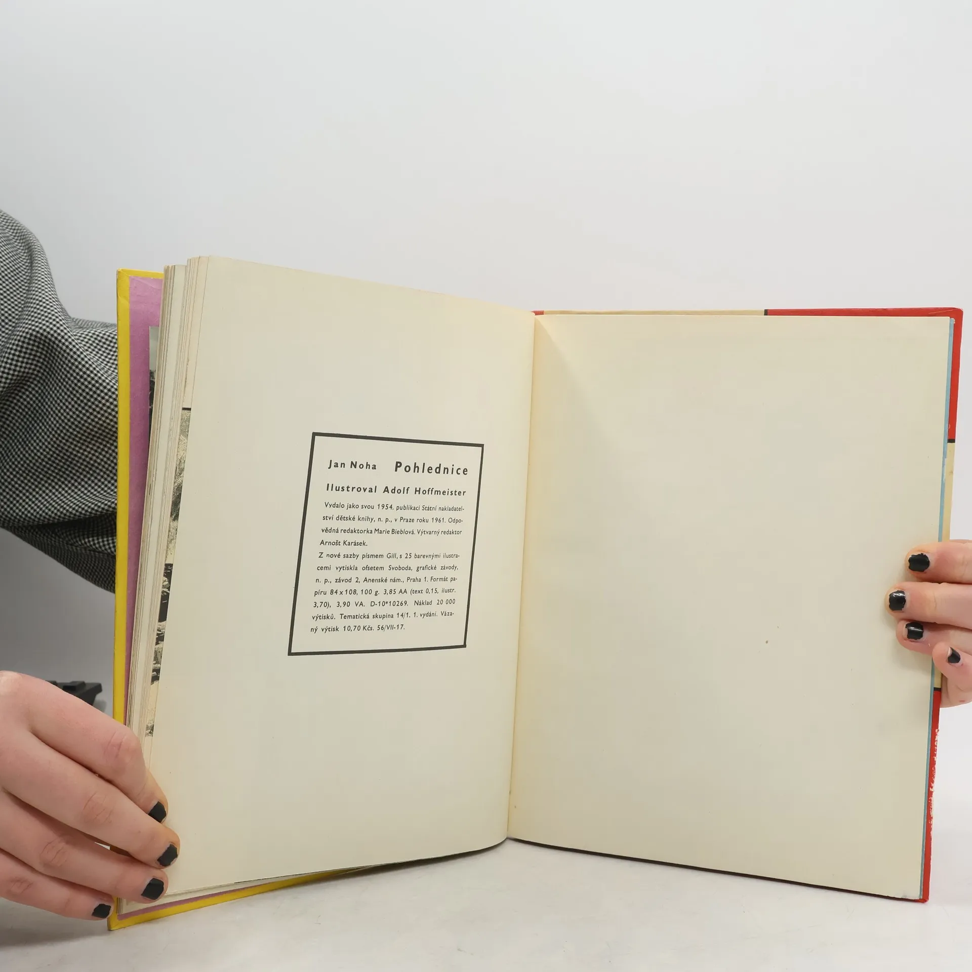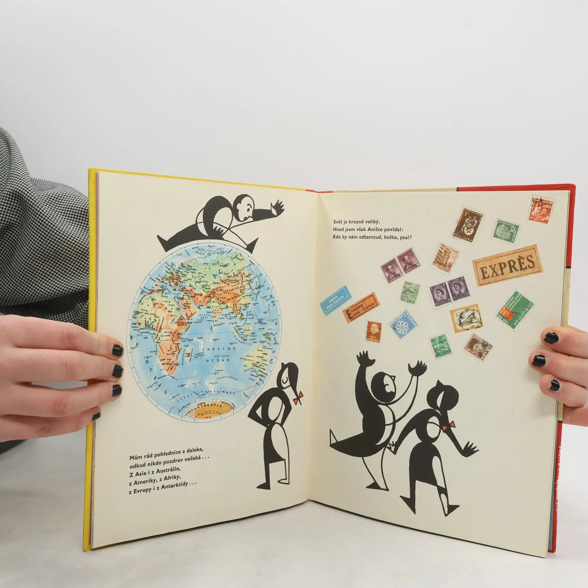 Krásně ilustrovaná kniha veršů o pohlednicích a dalekých zemích. Ilustrace Adolf Hoffmeister.