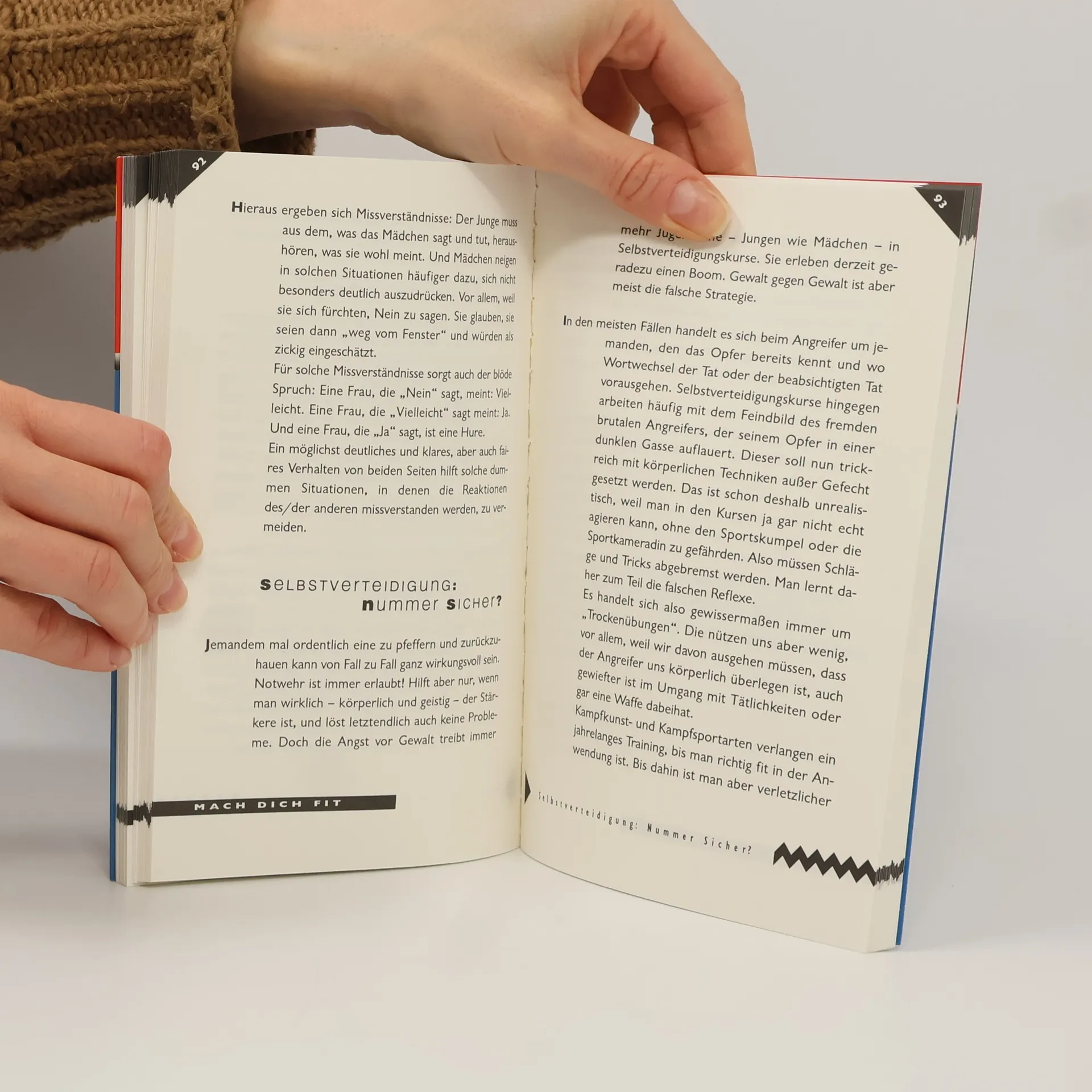 Es geht um die alltägliche Aggressivität, um Situationen, in denen Gewalt in der Luft liegt und man einfach Angst hat. Du findest in diesem Buch viele Tipps, wie du dich schützen, aber auch wehren kannst, wie du Bedrohungen erkennen und Übergriffen zuvorkommen kannst. Im Anhang des broschierten Buches finden sich Adressen, die weiterhelfen. (Quelle: Das Buch für Dich 1999/2000).