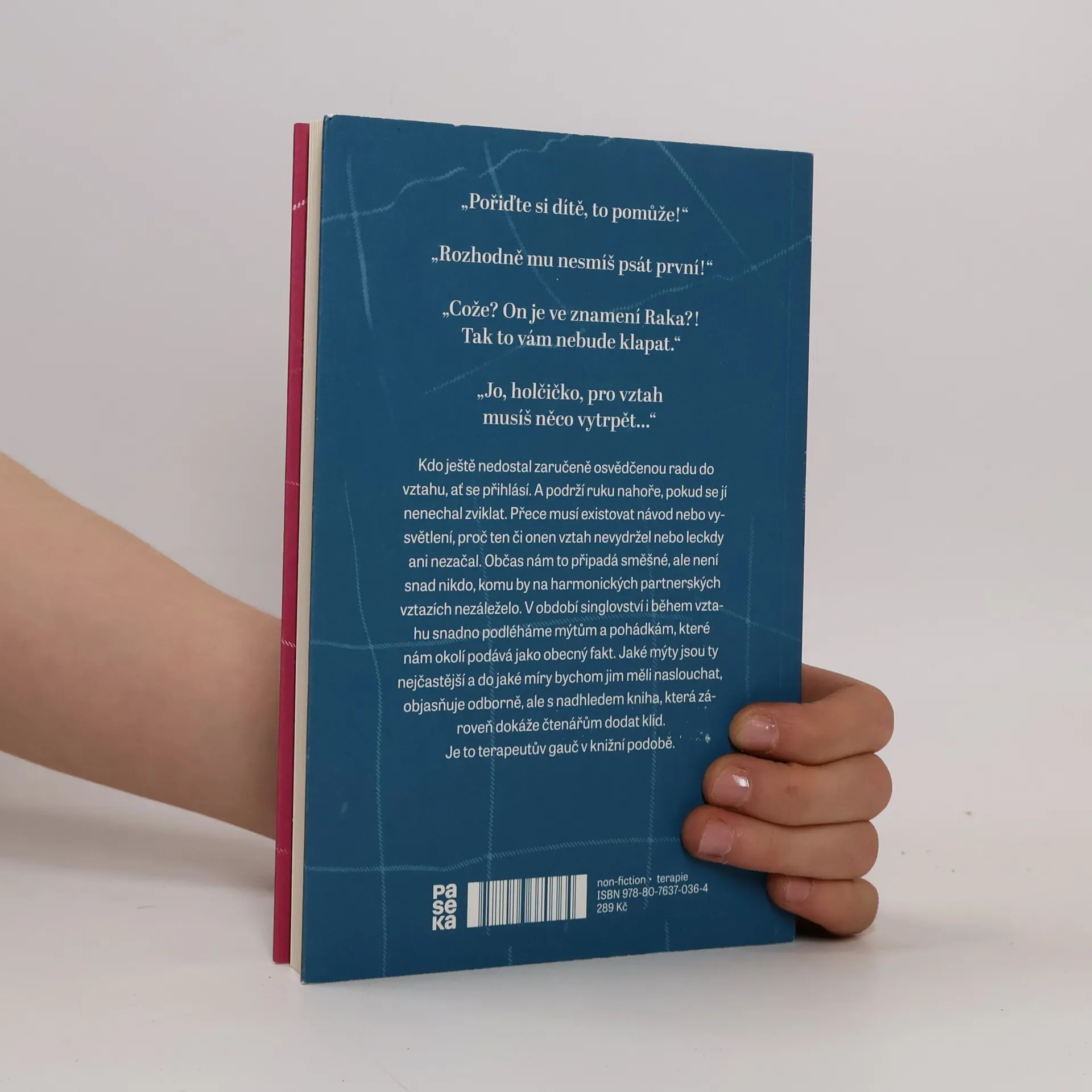 "Pořiďte si dítě, to pomůže!" "Rozhodně mu nesmíš psát první!" "Cože? On je ve znamení Raka?! Tak to vám nebude klapat. "Jo, holčičko, pro vztah musíš něco vytrpět..." Kdo ještě nedostal zaručeně osvědčenou radu do vztahu, ať se přihlásí. A podrží ruku nahoře, pokud se jí nenechal zviklat. Přece musí existovat návod nebo vysvětlení, proč ten či onen vztah nevydržel nebo leckdy ani nezačal. Občas nám to připadá směšné, ale není snad nikdo, komu by na harmonických partnerských vztazích nezáleželo. V období singlovství i během vztahu snadno podléháme mýtům a pohádkám, které nám okolí podává jako obecný fakt. Jaké mýty jsou ty nejčastější a do jaké míry bychom jim měli naslouchat, objasňuje odborně, ale s nadhledem kniha, která zároveň dokáže čtenářům dodat klid. Je to terapeutův gauč v knižní podobě.