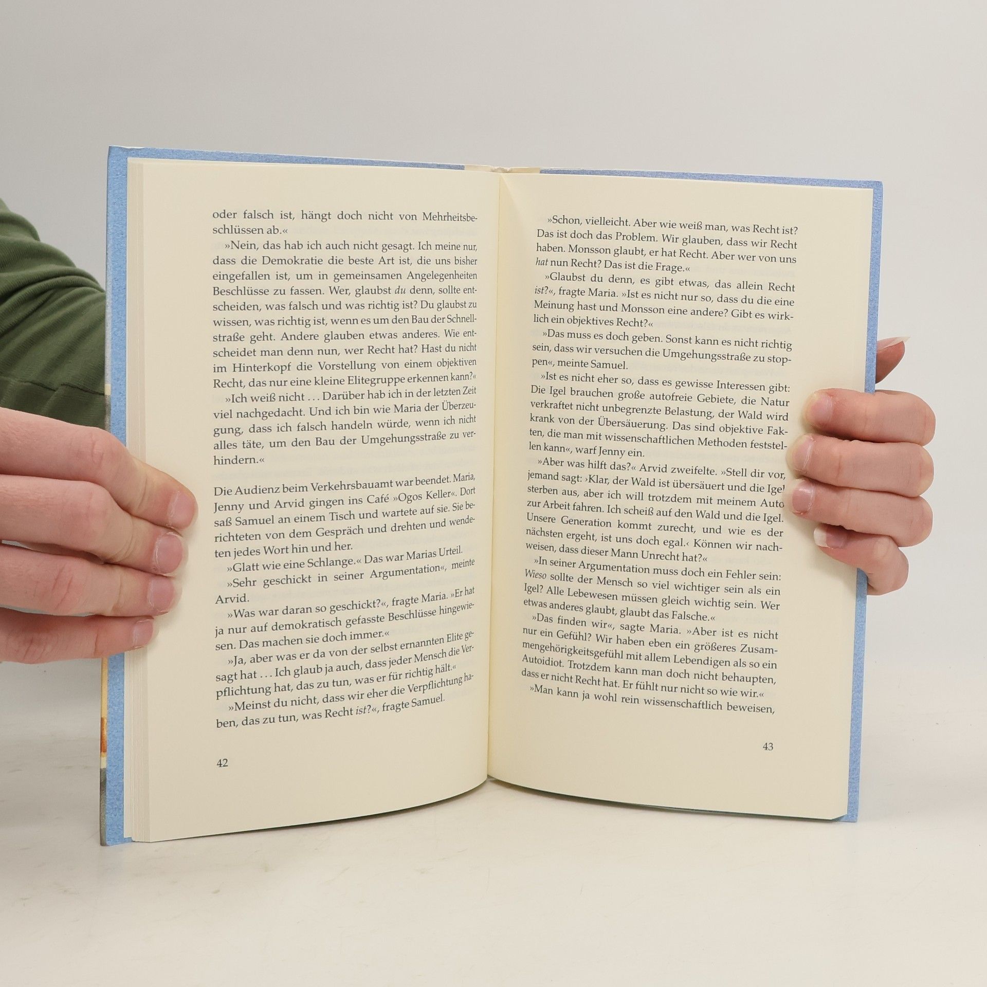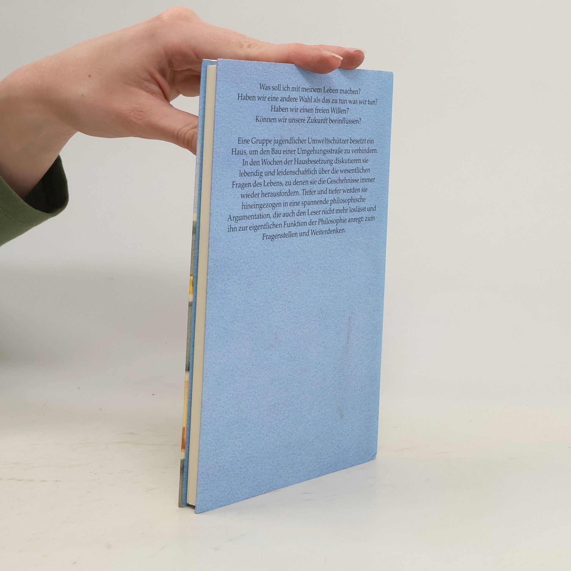 Arvid und Maria gehören zu einer Gruppe von Hausbesetzern, die den Bau einer Umgehungsstraße verhindern wollen. Für den Schutz der Umwelt setzen sie sogar ihre berufliche Zukunft aufs Spiel. Warum das so ist? Arvid sucht nach den Gründen seines Handelns und kommt zu dem Ergebnis, dass er keine andere Wahl hat, als das zu tun, was er tut. Nur so ist er mit sich zufrieden. Sind seine Motive deshalb egoistisch oder handelt er vielmehr aus sozialer Verantwortung? Gemeinsam mit seinen Freunden beginnt er eine lebendige und leidenschaftliche Diskussion über die zentralen Fragen des Lebens, die durch die äußeren Ereignisse immer wieder angestoßen wird. Als ein Freund sich umbringt, philosophiert die Gruppe über den Tod. Ist dieser das endgültige Ende oder bekommen wir eine neue Chance? Die Schwangerschaft Marias führt sie zu der Frage, wann das Menschsein beginnt, und ob es eine objektive Moral gibt, die eine Entscheidung für oder gegen das neue Leben rechtfertigt. Und als Johan durch Drogen andere Welten entdeckt, fragt sie sich, ob die Welt wirklich so ist, wie sie uns erscheint oder ob es eine Welt an-und-für-sich gibt. Die Freunde leben und handeln - genau wie wir alle -, als ob sie die Antwort schon wüssten. Doch während sie diskutieren, entdecken sie, dass sie zunächst einmal die richtigen Fragen stellen müssen. Ein Buch, das zum freien Denken herausfordert und einen Einstieg für philosophische Diskussionen im Unterricht gibt.