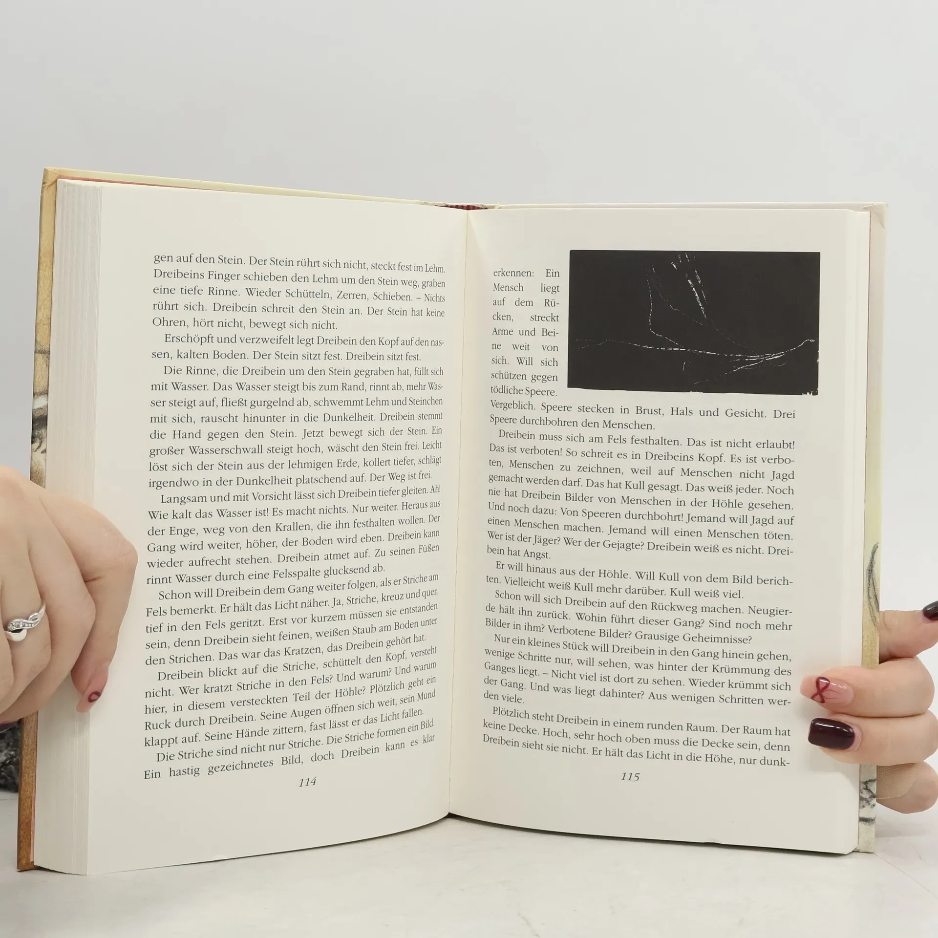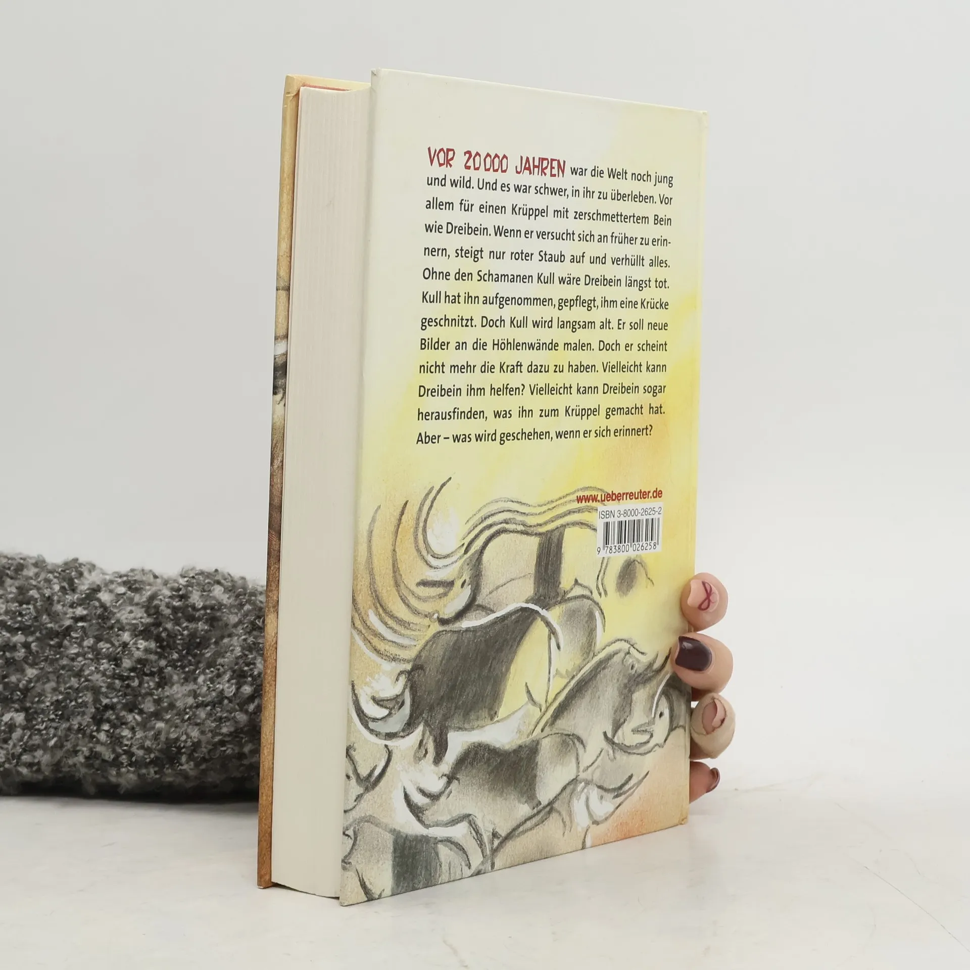 Vor 20 000 Jahren war die Welt noch jung und wild. Und es war schwer, in ihr zu überleben. Vor allem für einen Krüppel wie Dreibein. Nicht nur sein zerschmettertes Bein macht ihm zu schaffen. Seine Vergangenheit versinkt in rotem Staub, sooft er an sie denkt. Was Dreibein bleibt, ist die riesige Höhle mit den geheimnisvollen Bildern. Das ist die Welt des Schamanen Kull. Ohne Kull wäre Dreibein längst tot. Doch Kull wird alt. Und Kull ist krank. Er soll neue Bilder an die Höhlenwände malen. Aber er scheint nicht mehr die Kraft dazu zu haben. Vielleicht kann Dreibein ihm helfen. Vielleicht kann Dreibein sogar herausfinden, welche Bilder aus seiner Vergangenheit sich hinter der Wolke aus rotem Staub verbergen. Aber - was wird geschehen, wenn er sich erinnert?