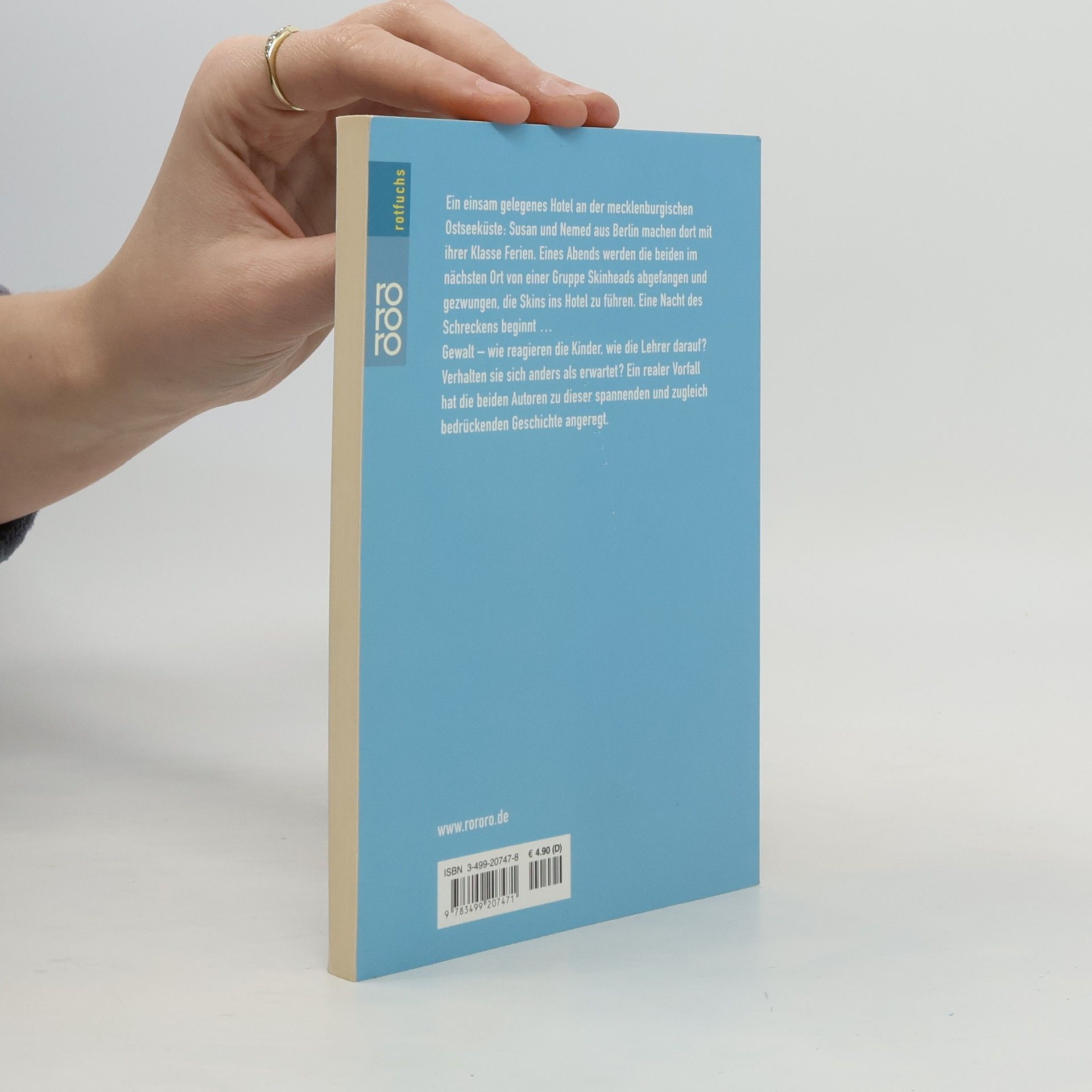 Ein einsam gelegenes Hotel an der mecklenburgischen Ostseeküste: Susan und Nemed aus Berlin machen dort mit ihrer Klasse Ferien. Eines Abends werden die beiden im nächsten Ort von einer Gruppe Skinheads abgefangen und gezwungen, die Skins ins Hotel zu führen. Eine Nacht des Schreckens beginnt ...Gewalt –– wie reagieren die Kinder, wie die Lehrer darauf? Verhalten sie sich anders als erwartet? Ein realer Vorfall hat die beiden Autoren zu dieser spannenden und zugleich bedrückenden Geschichte angeregt.